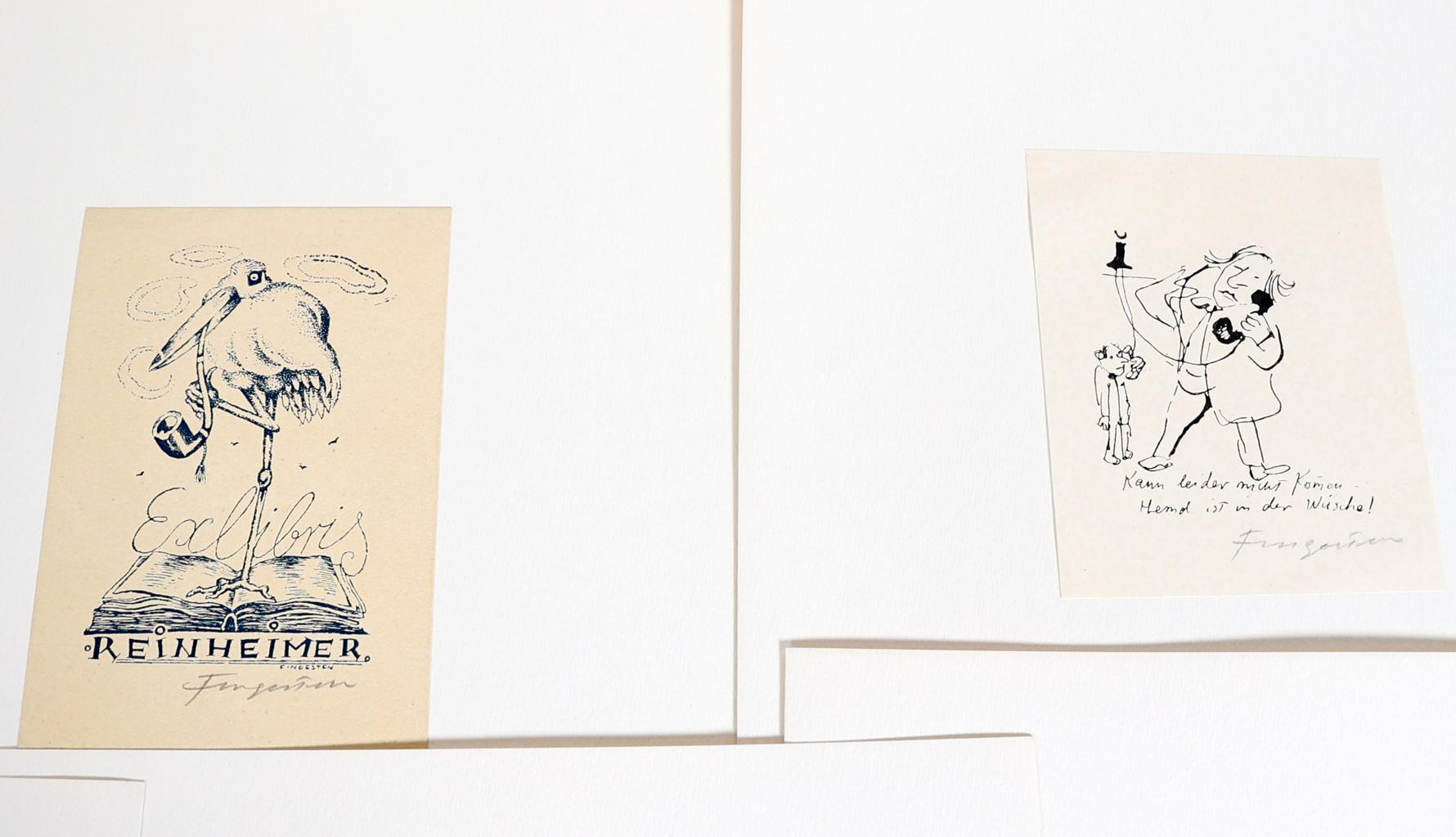 Fingesten, M., collectie van 45 exlibris / kleingrafiek, 32 x gesigneerd, 12 x niet gesigneerd, hoogdruk / cliché, deels opgeplakt (geweest), plus 1 ingekleurde kleingrafiek, gesigneerd) ( pf 1934 Malz)