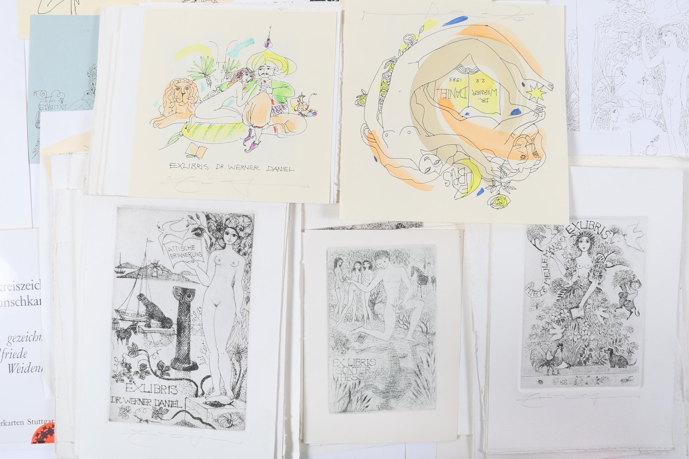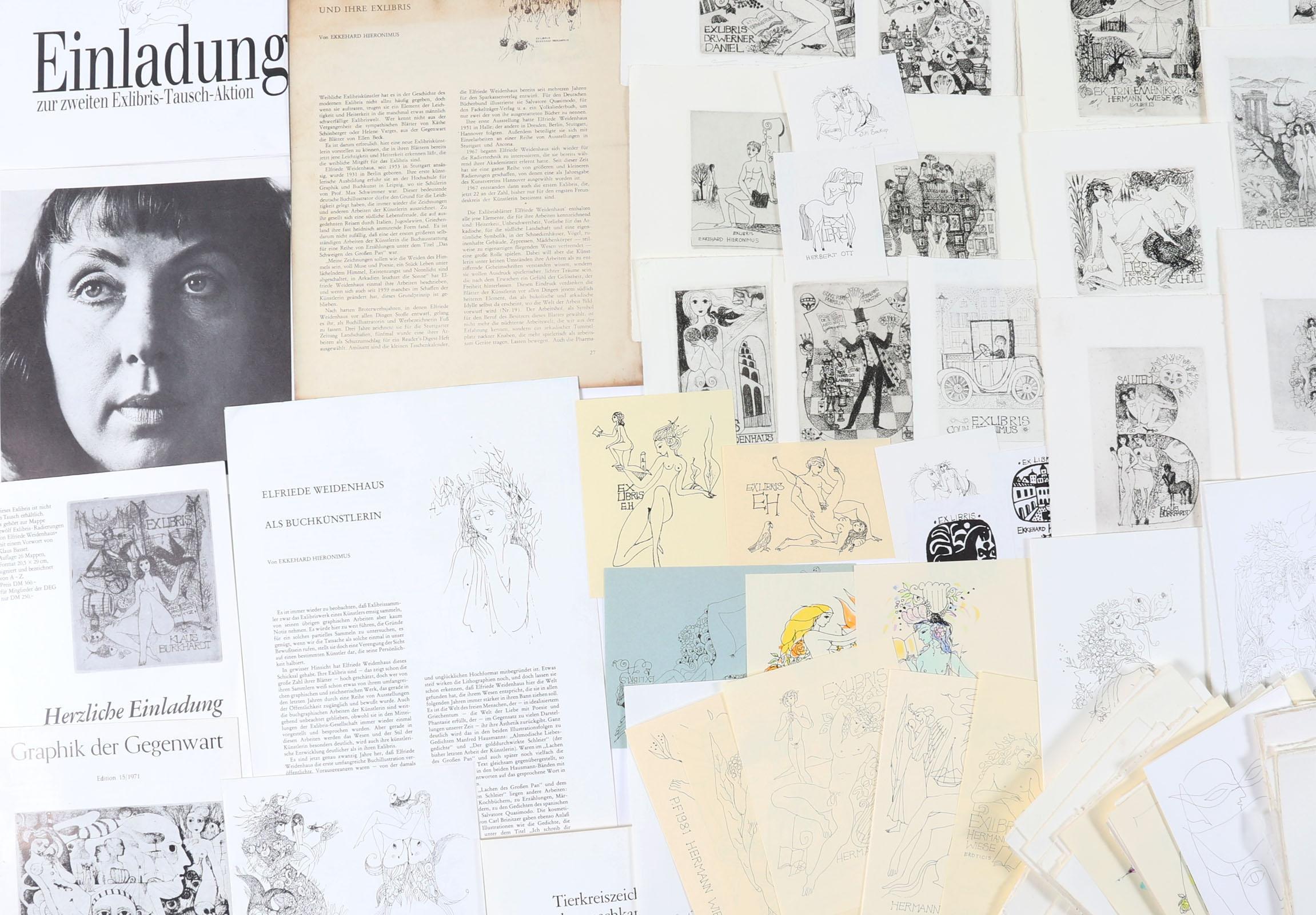 Weidenhaus, E., plm. 150 exlibris / kleingrafiek, voornamelijk C3, grotendeels gesigneerd, plus informatie over de kunstenaar, bevat enkele doubletten