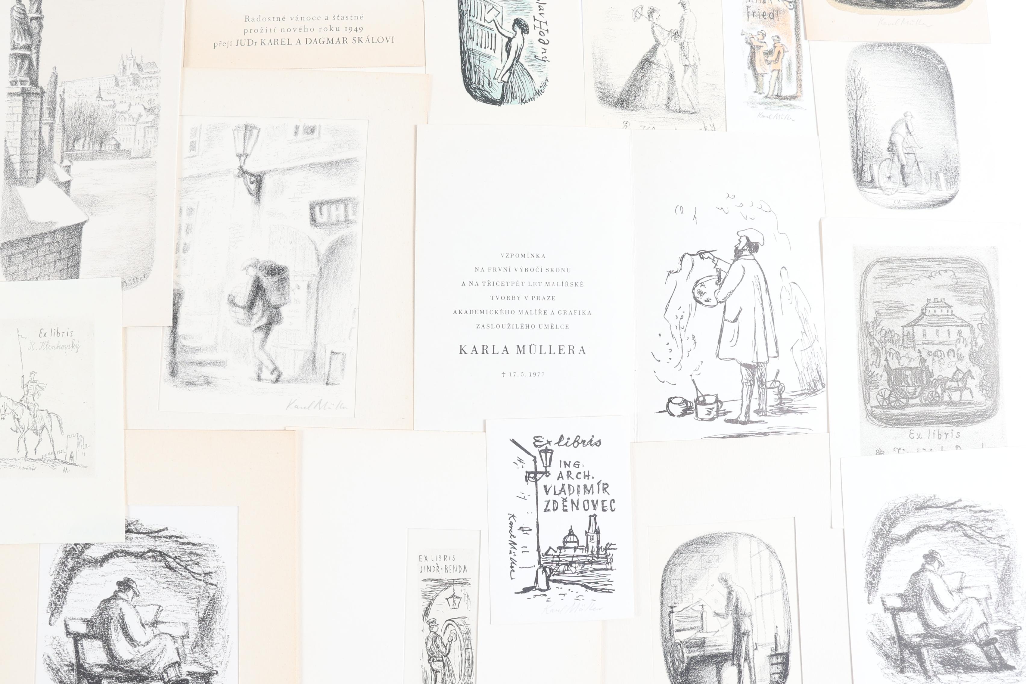 Mueller, K., plm. 35 exlibris / kleingrafiek, litho, opgeplakt, deels gesigneerd