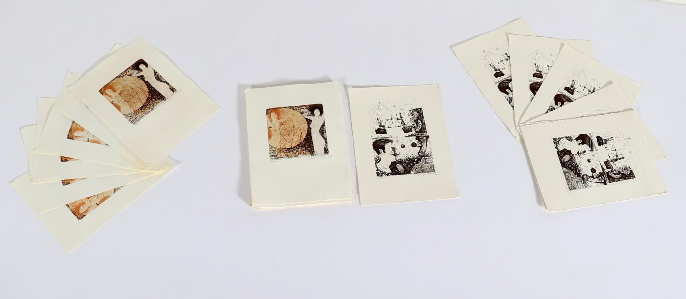 Dergachov, O., 2 exlibris voor Meulemans (1999 - Phryne, 2000 - evenwicht), C3, genummerd en gesigneerd, plm. 45 stuks (restoplagen)
