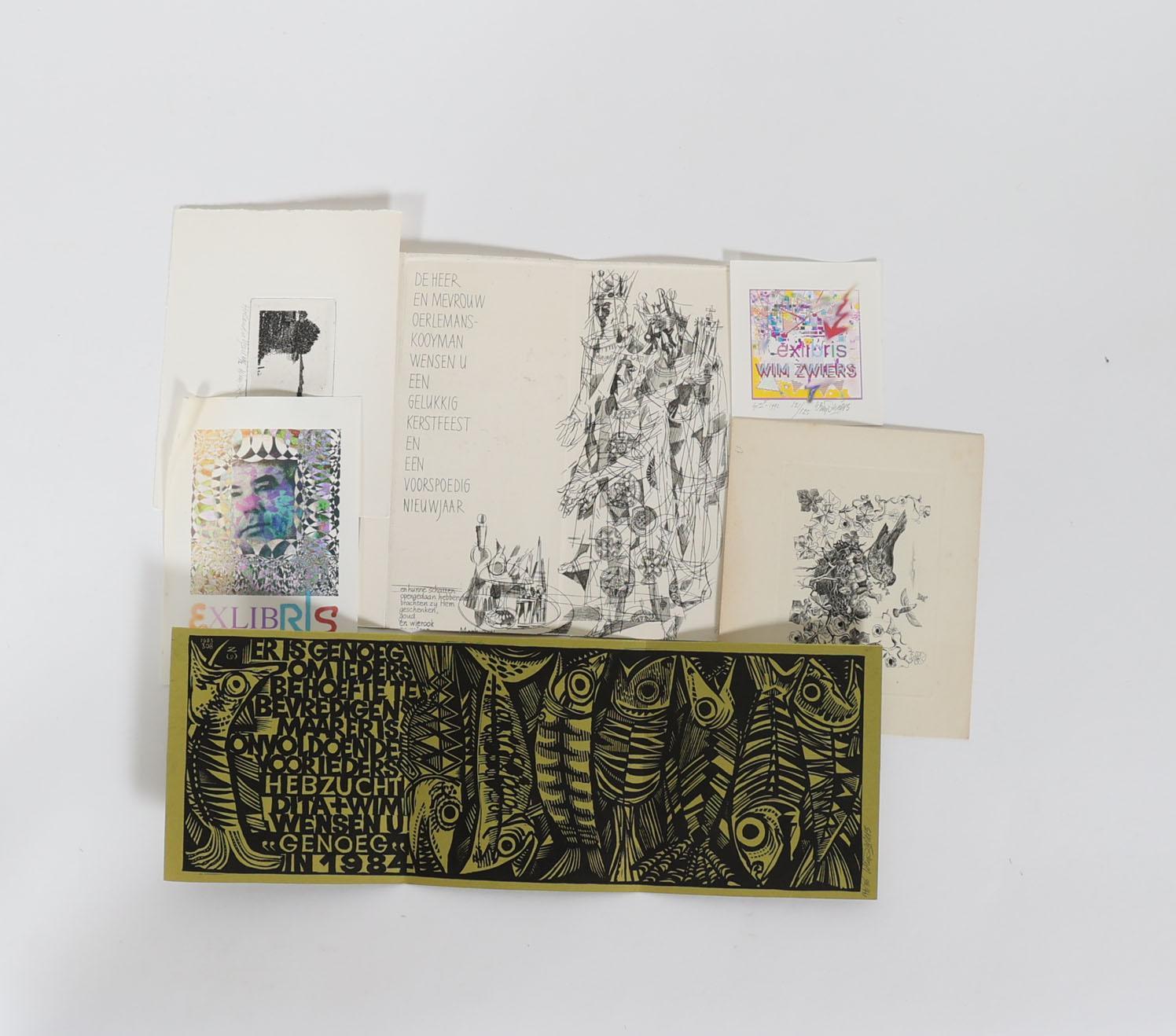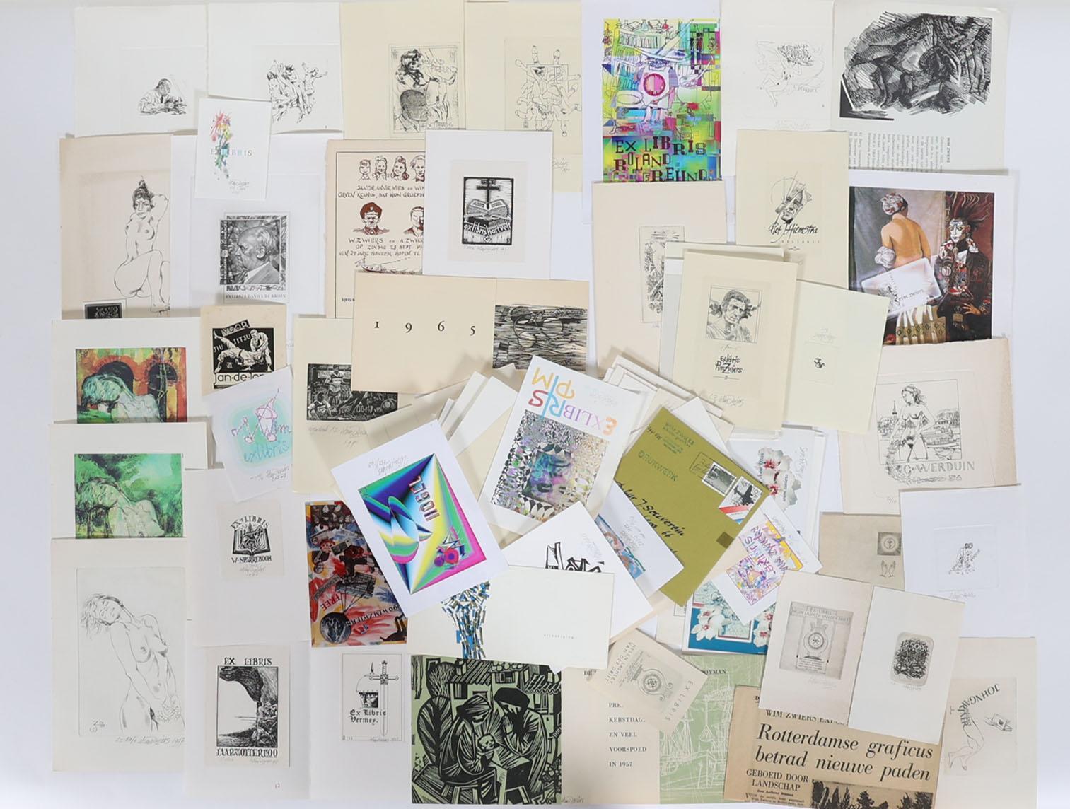 Zwiers, W., plm. 100 exlibris / kleingrafiek, diverse technieken, grotendeels gesigneerd.