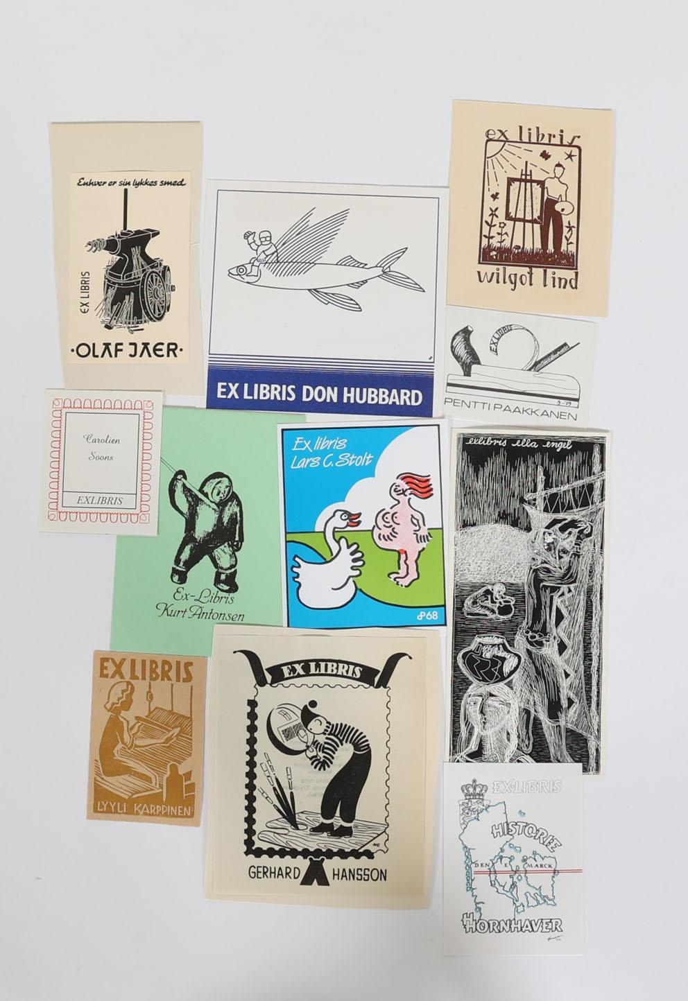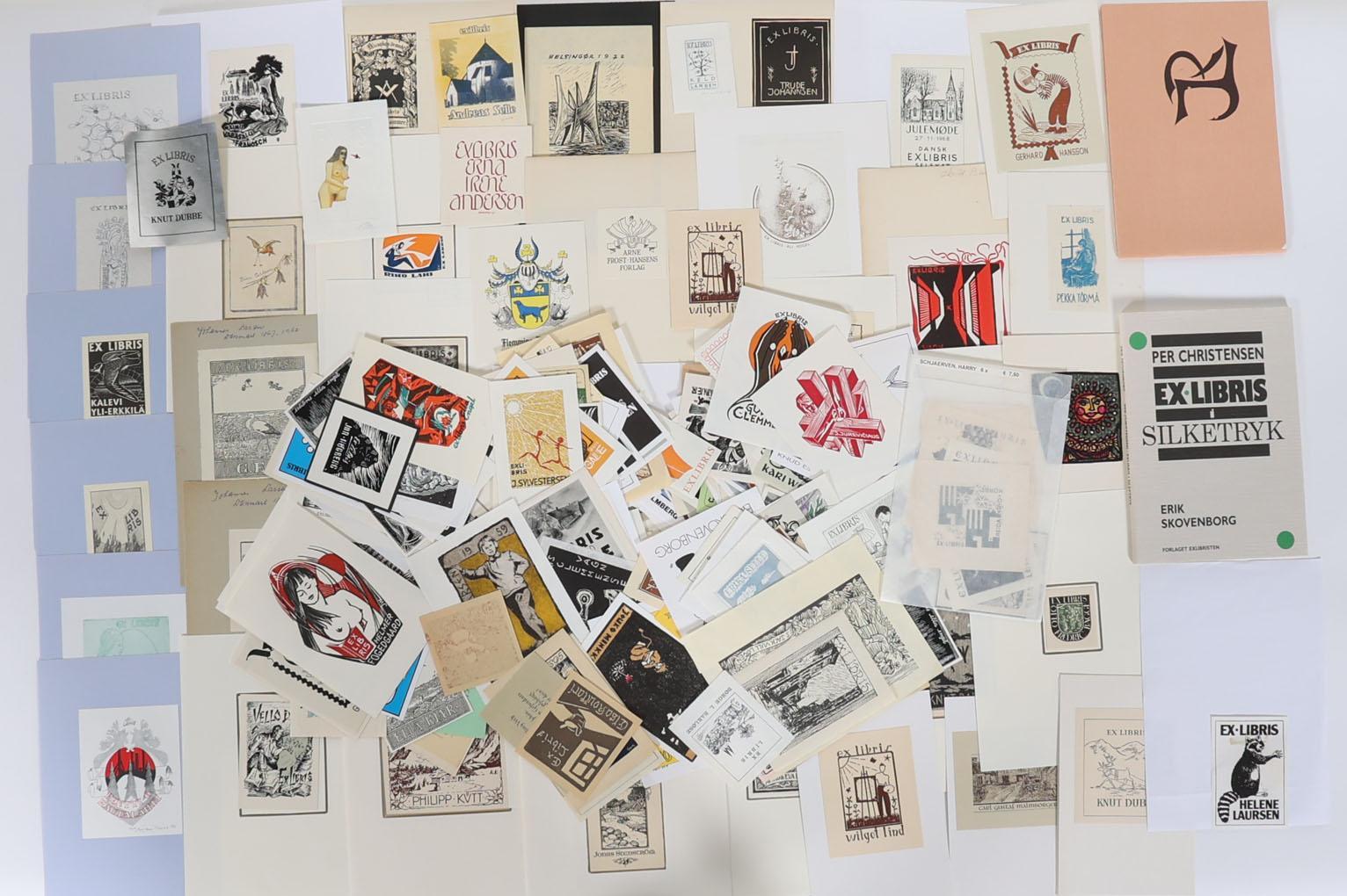 collectie van plm. 200 exlibris / kleingrafiek, gemaakt door kunstenaars uit Noorwegen / Zweden / Denemarken. diverse technieken, deels gesigneerd, deels opgeplakt. Toegevoegd: publicatie over Per Christensen, en publicatie nav exlibris-congres 1972 in Helsingor (met originele grafiek).