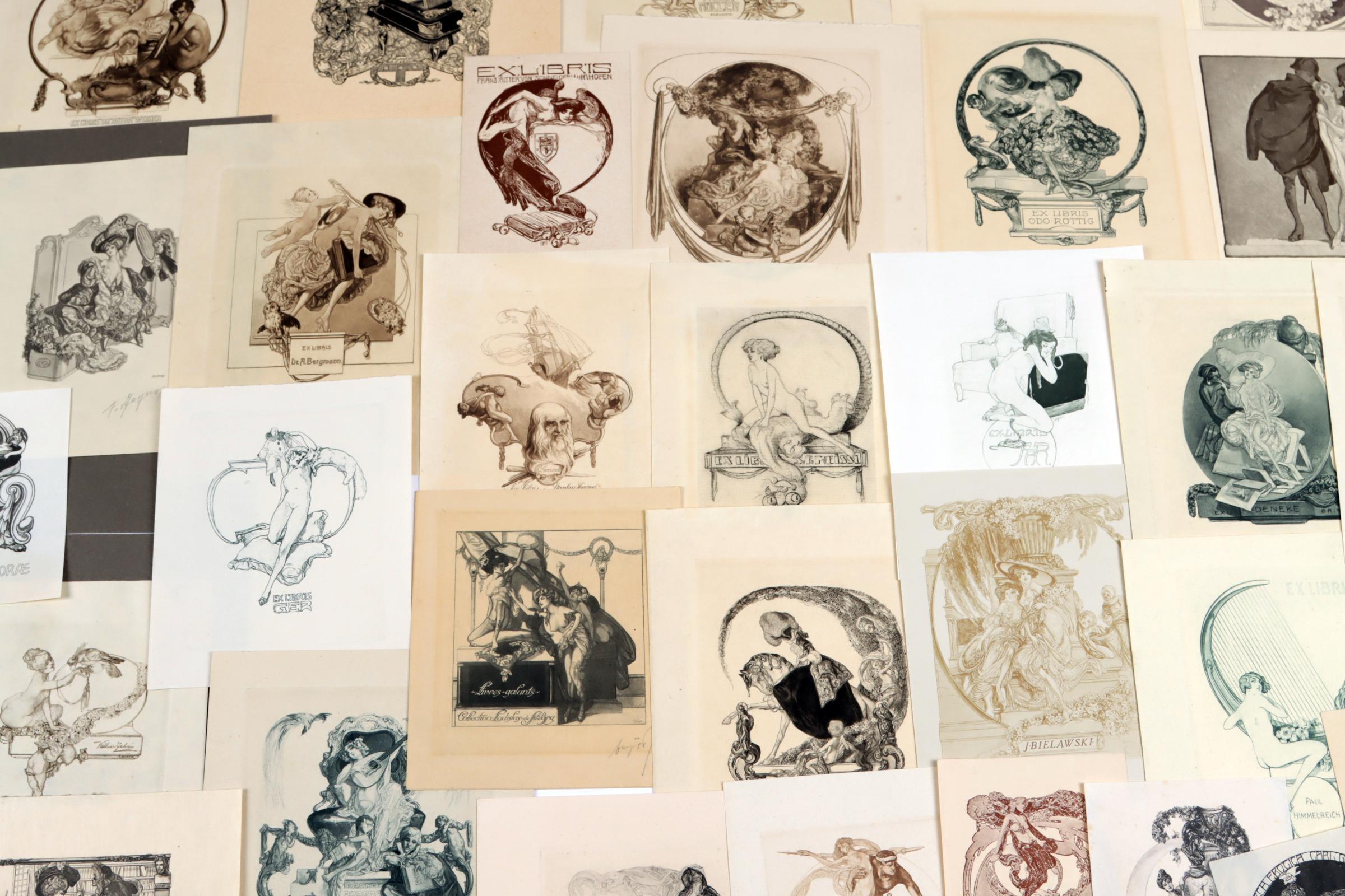 Bayros, F. von, 44 exlibris (37 x heliogravure) + 7 exlibris (cliché), (6 x gesigneerd, rest x niet gesigneerd). Deels opgepakt (geweest). O.a. voor: Ruprecht, Senger, Becher, Ascher, Himmelreich, Roettig, Deneke, Bergmann, Bielawski, Thaler.