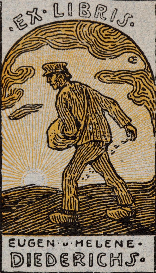 Orlik, E., exlibris voor Eugen u Helene Diederichs, litho, niet gesigneerd, opgeplakt