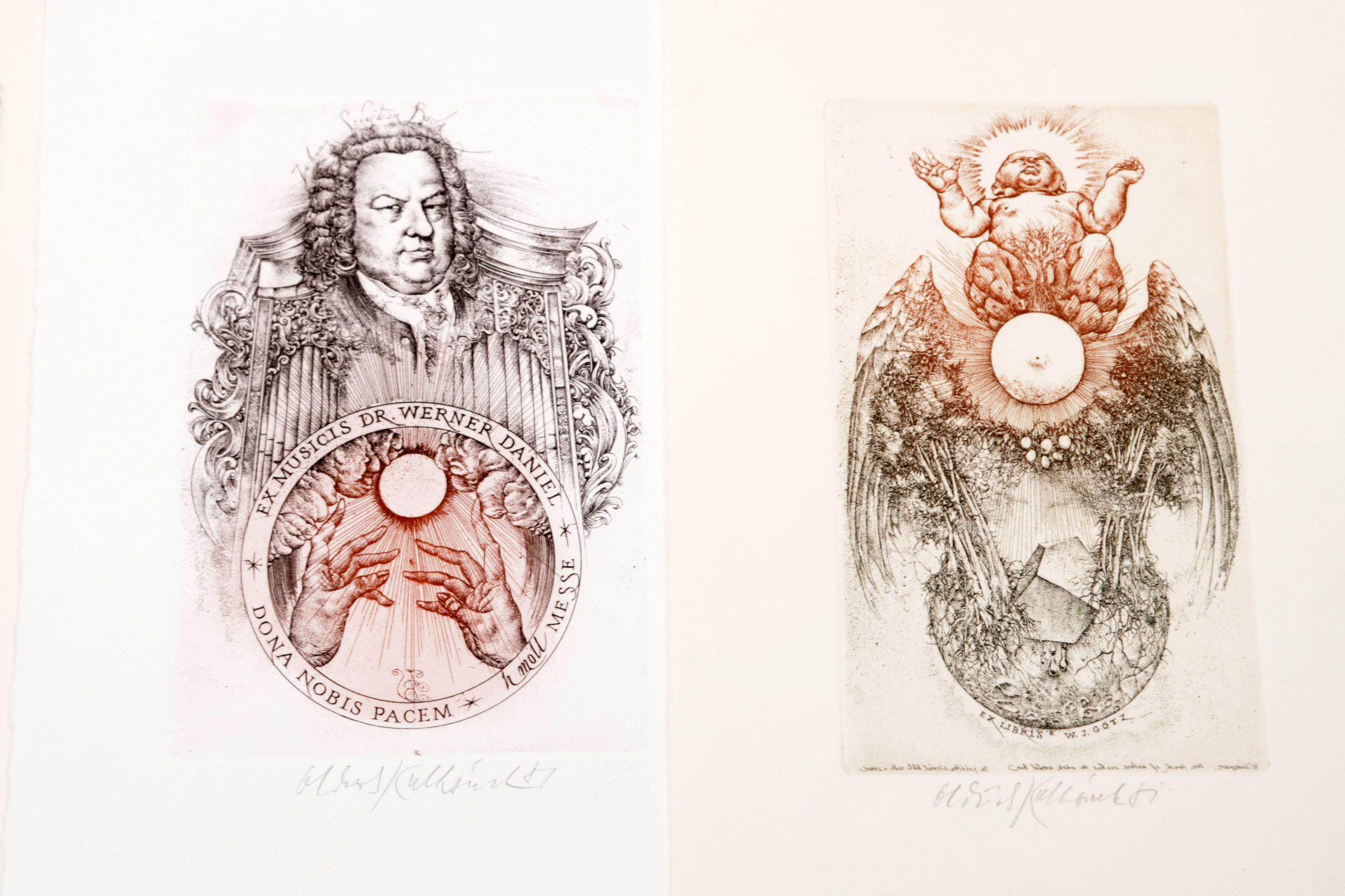 Kulhanek, Oldrich, 4 exlibris, C3, gesigneerd. Voor Gotz, Daniel (Paracelsus), Daniel (Bach), Blum.