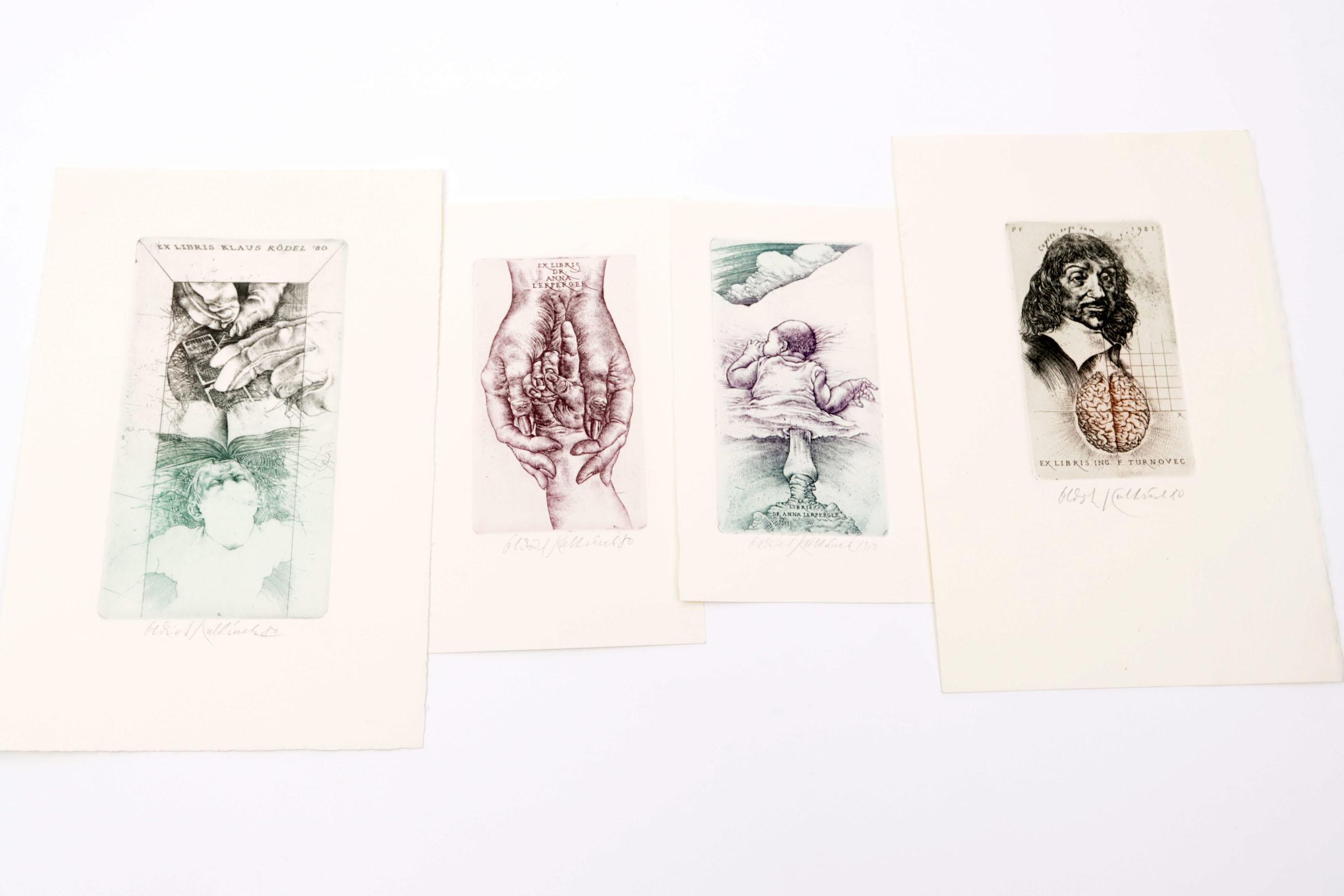 Kulhanek, Oldrich, 4 exlibris, C3, gesigneerd. Voor Turnovec, Roedel, Lerperger, Lerperger