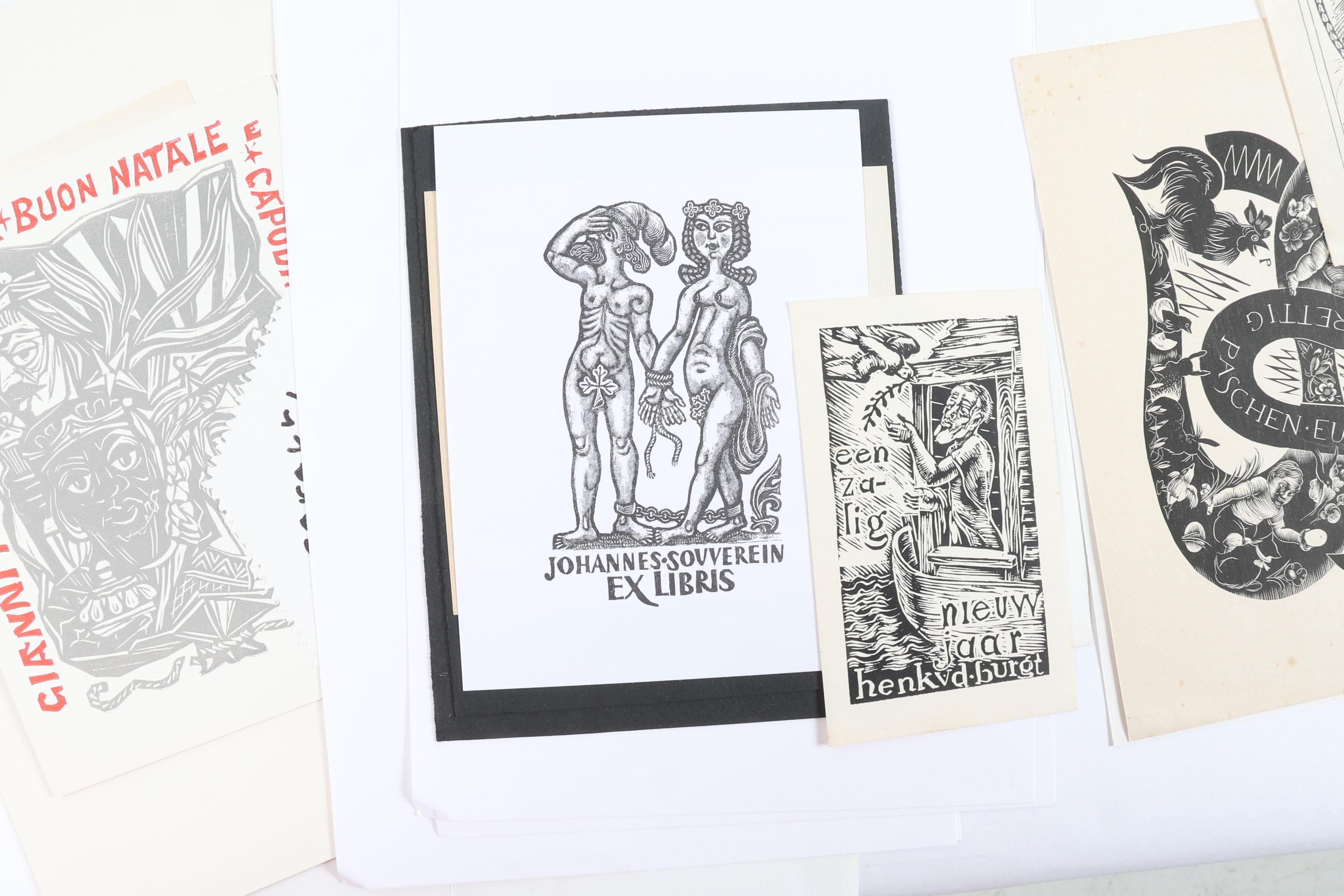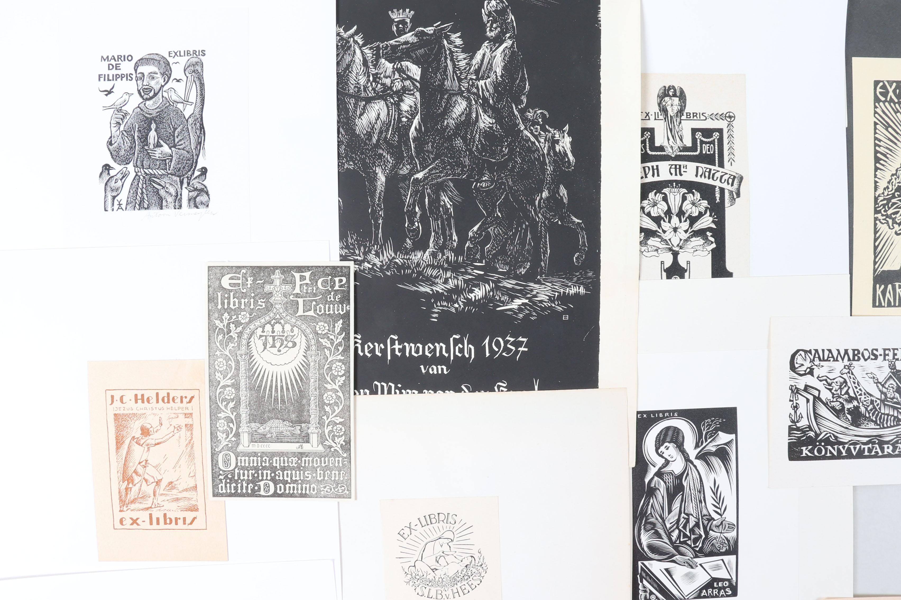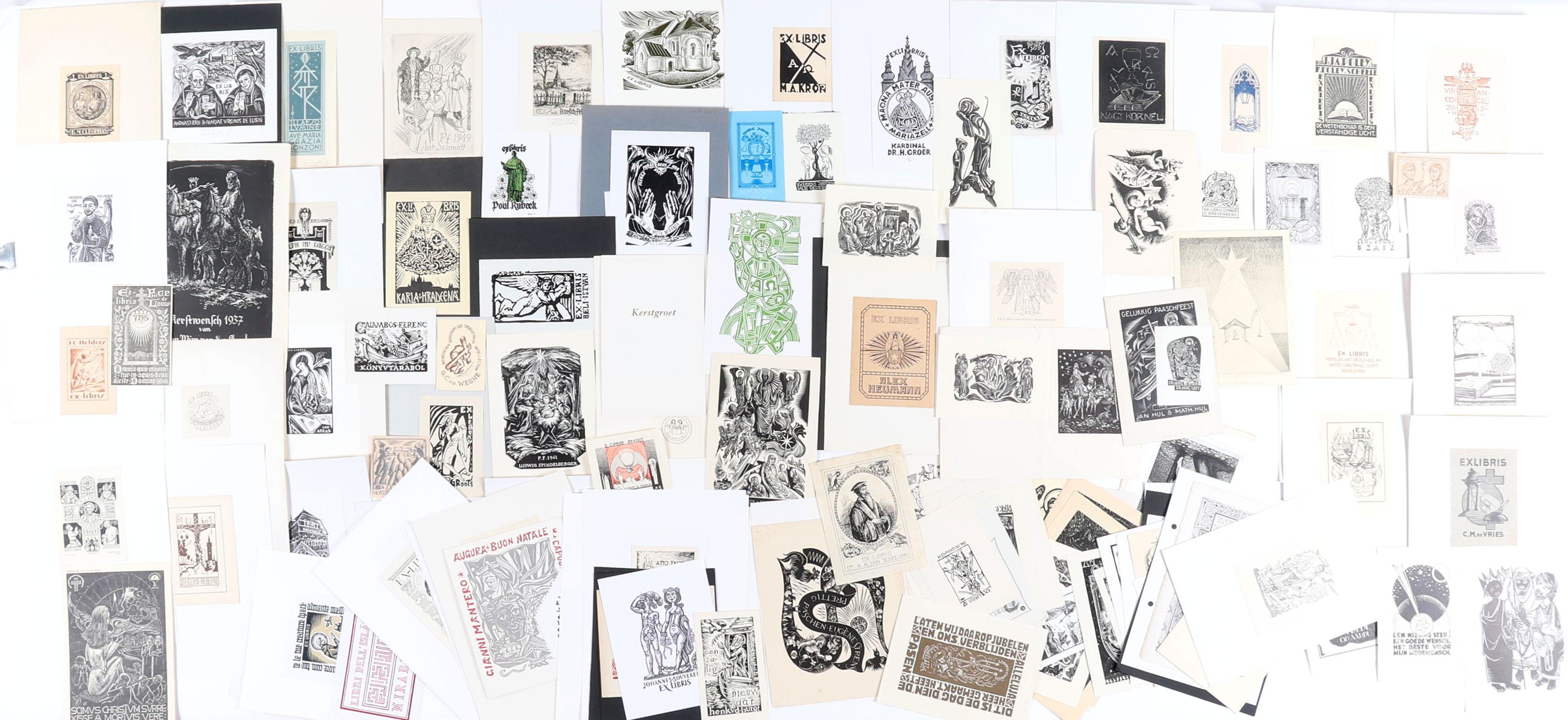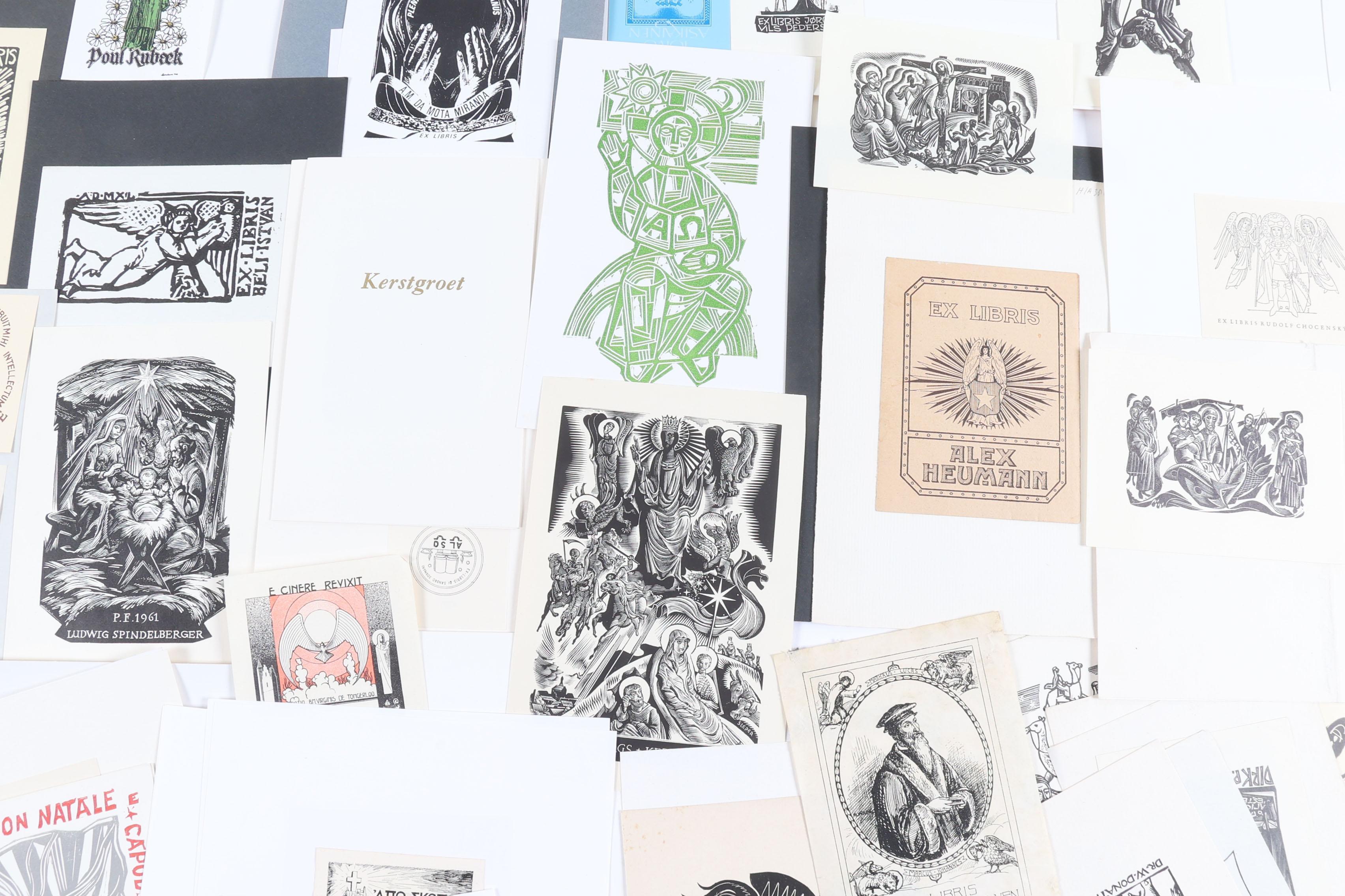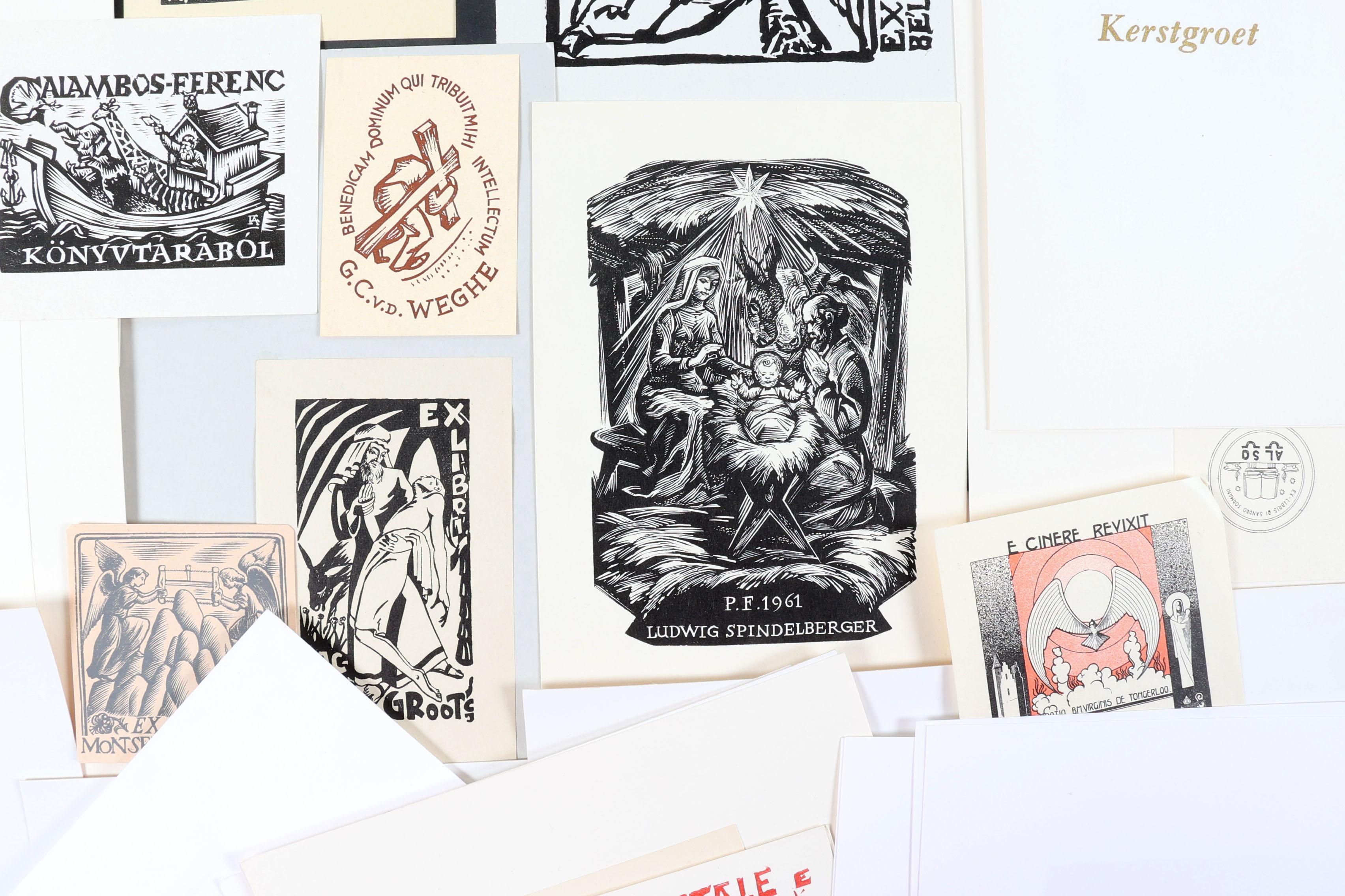 collectie van plm. 125 exlibris / kleingrafiek, thema: 'religie / heiligen', voornamelijk hoogdruk / vlakdruk. Deels gesigneerd, deels opgeplakt