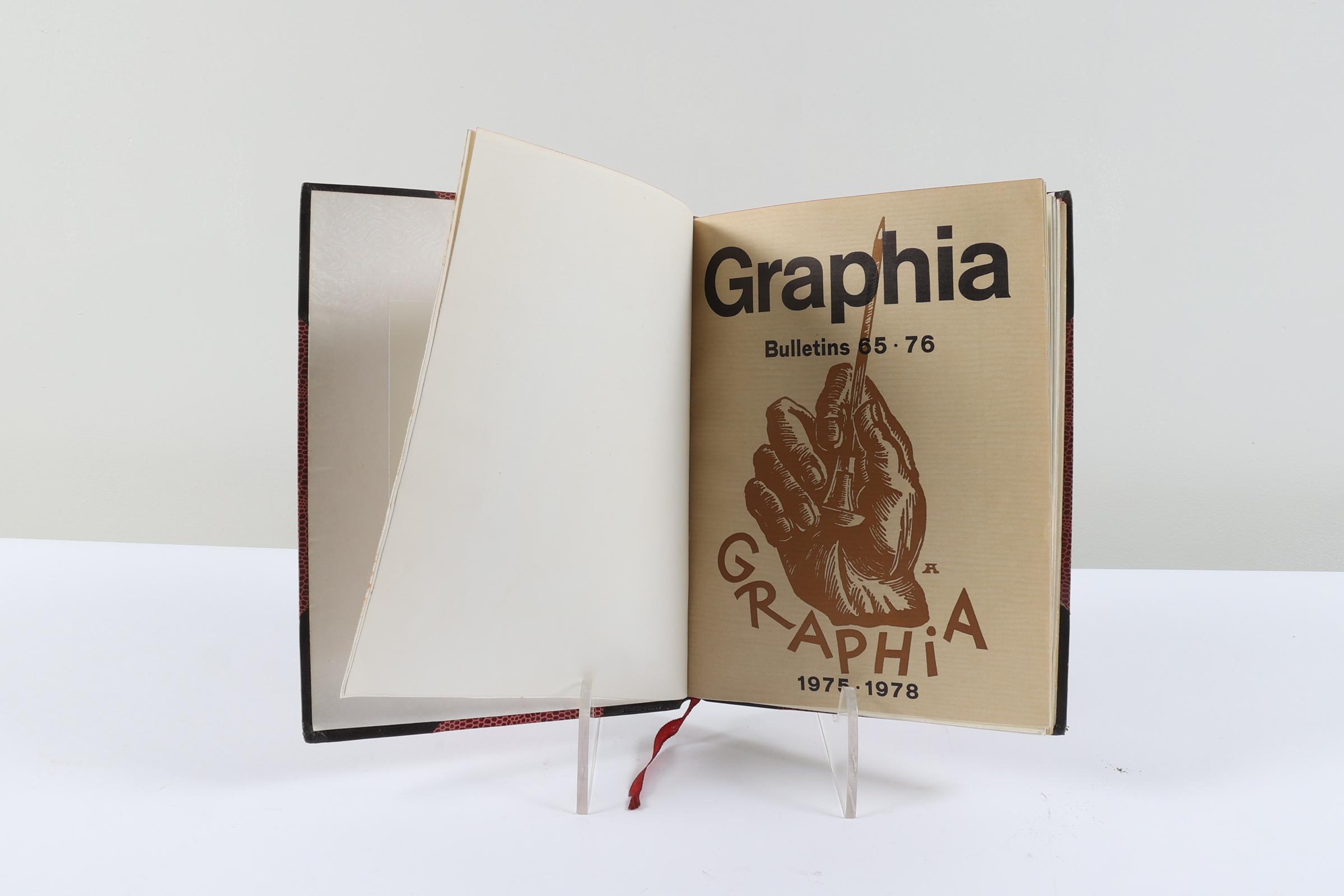 'Graphia Bulletin', ingebonden jaargangen 1958 t/m 1978, deels met goud-afwerking en leeslint.