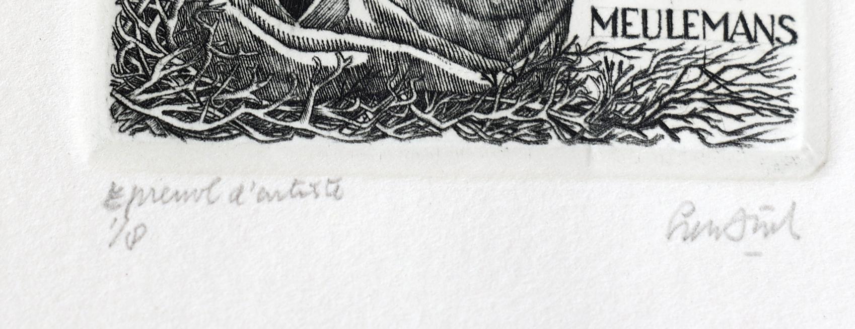 Strik, L., exlibris voor Meulemans, C2, beelddrager plus afdruk