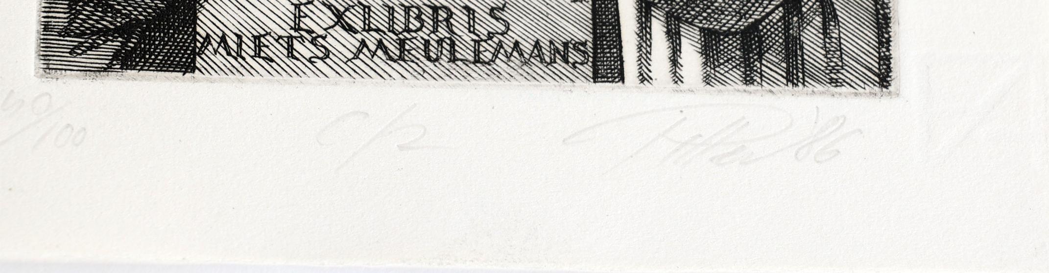 Piller, A., exlibris voor Meulemans, C3 (4 evangelisten), beelddrager plus afdruk