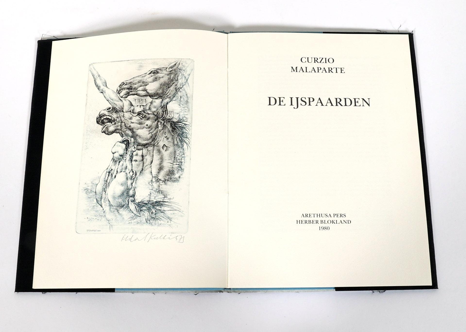 Kulhanek, O., in: Curzio Malaparte, 'De IJspaarden', Arethusa Pers 1980, twee etsen van Kulhanek, gesigneerd, nr. 67 / 125, band iets vervuild