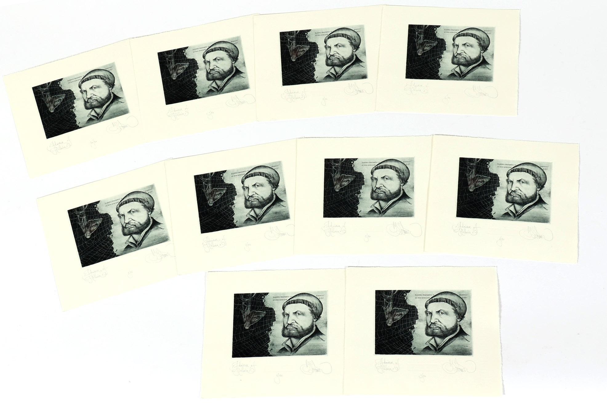 K. Kalynovich, 2 exl. voor Meulemans ('Hieronymus Tree', 'admirer of Holbein'), C3C5, genummerd en gesigneerd, in totaal plm. 15 stuks (restoplagen)