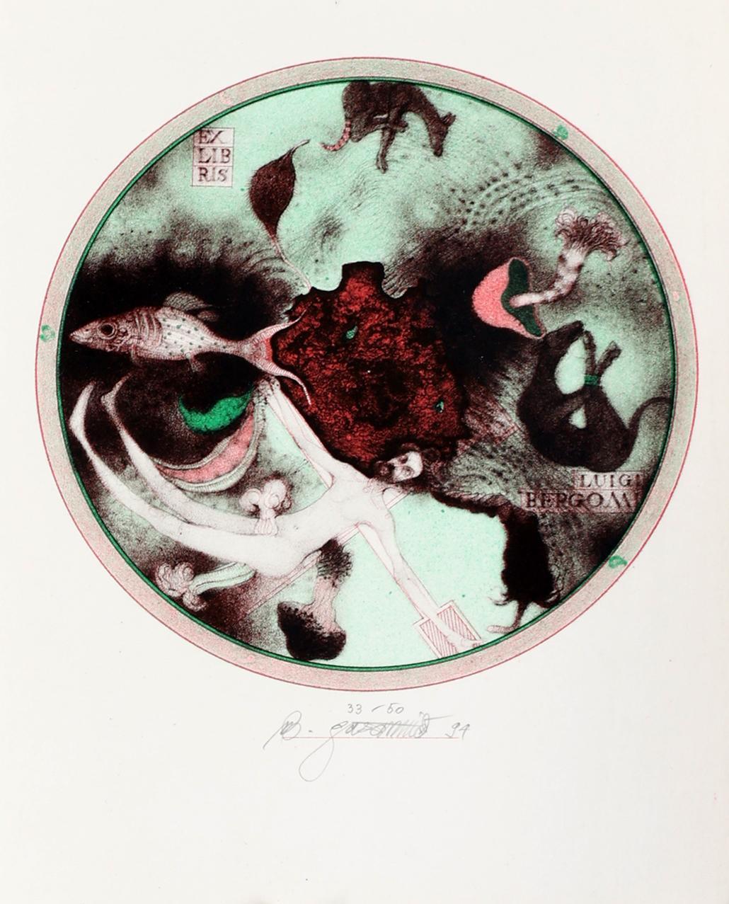 Gazovich, Vl., 3 exlibris, meerkleurenlitho's, genummerd en gesigneerd, (Vlado G, Bergomi, Ina)
