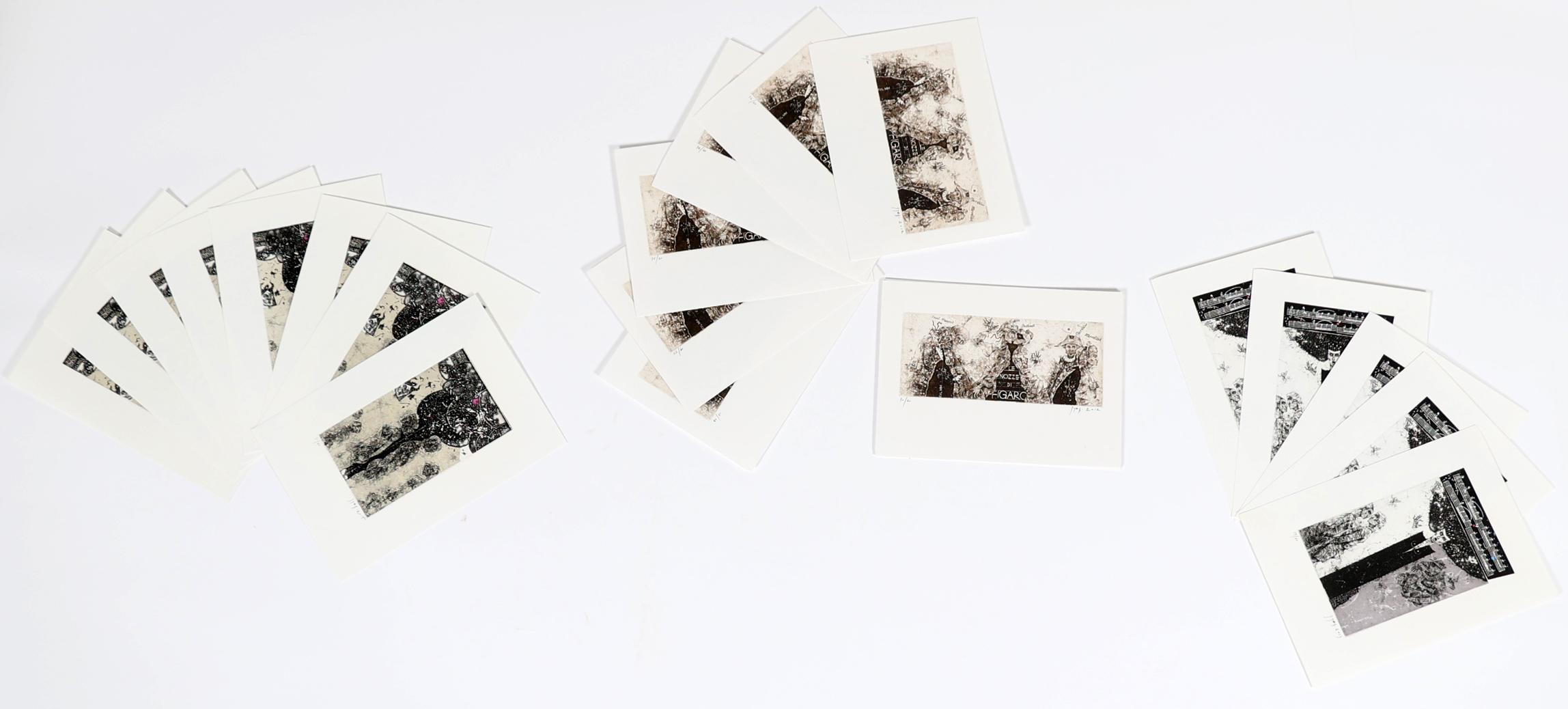 Zuev, V., 3 exlibris op naam van Meulemans, restoplagen (5 x Zauberfloete', 8 x 'Norma', 13 x 'La Nozze di Figaro'). Totaal 26 stuks, MT, gesigneerd, genummerd