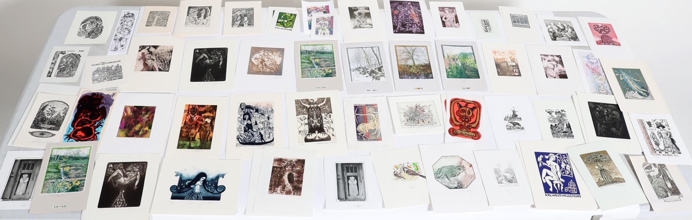 collectie van plm. 95 exlibris (enkele pf's) op naam van Meulemans. Voornamelijk diepdrukken. Vrijwel alle gesigneerd. Bevat o.a. werk van Harry Juergens, Komacek, Timochenko, Didelyte, Felix, Karl-Georg Hirsch, Kratky, Jepkes, Strik, Zwiers, Jakubowski, Vereschagin, Stanclova, Lindeman, Mommen, Hampl, Volkamer, Hascic, Feilhauwer, Benenson, Hrapov, Kisza, Ven, Mishin, Pfeiler, Stauf, Baeyens, Van Vlijmen, Mezl, Kmieliauskas, Bednarik.