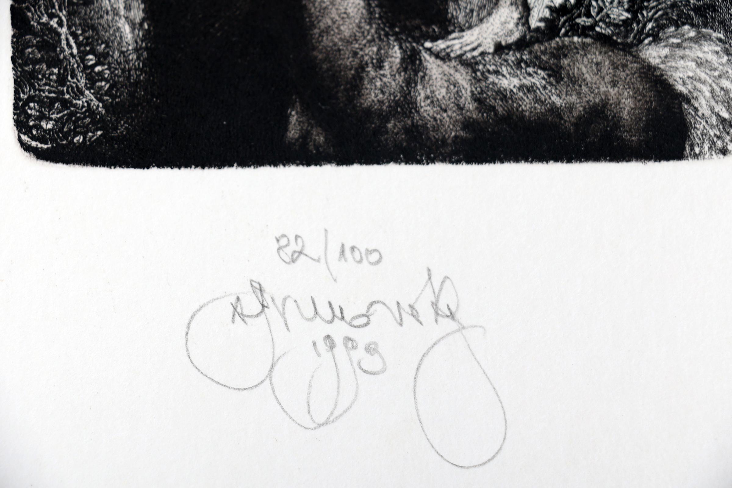 Brunovsky, A., 2 exlibris (Wout Meulemans, 1993, genummerd en gesigneerd, 1993, 'unicorn', 130x100 mm, plus: Miets Meulemans, 1993, genummerd en gesigneerd.