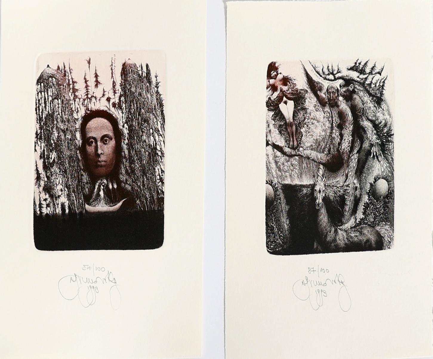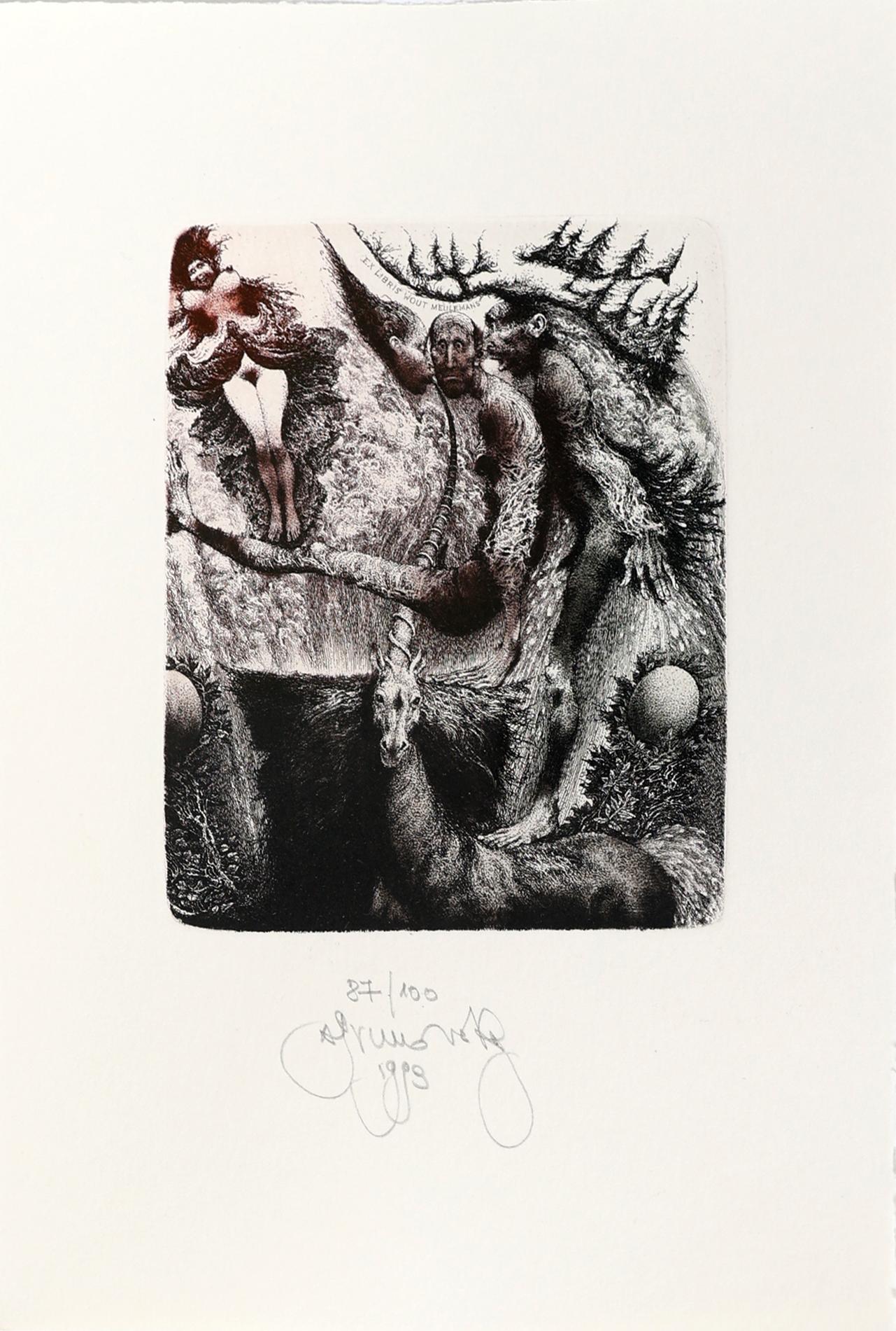 Brunovsky, A., 2 exlibris (Wout Meulemans, 1993, genummerd en gesigneerd, 1993, 'unicorn', 130x100 mm, plus: Miets Meulemans, 1993, genummerd en gesigneerd.