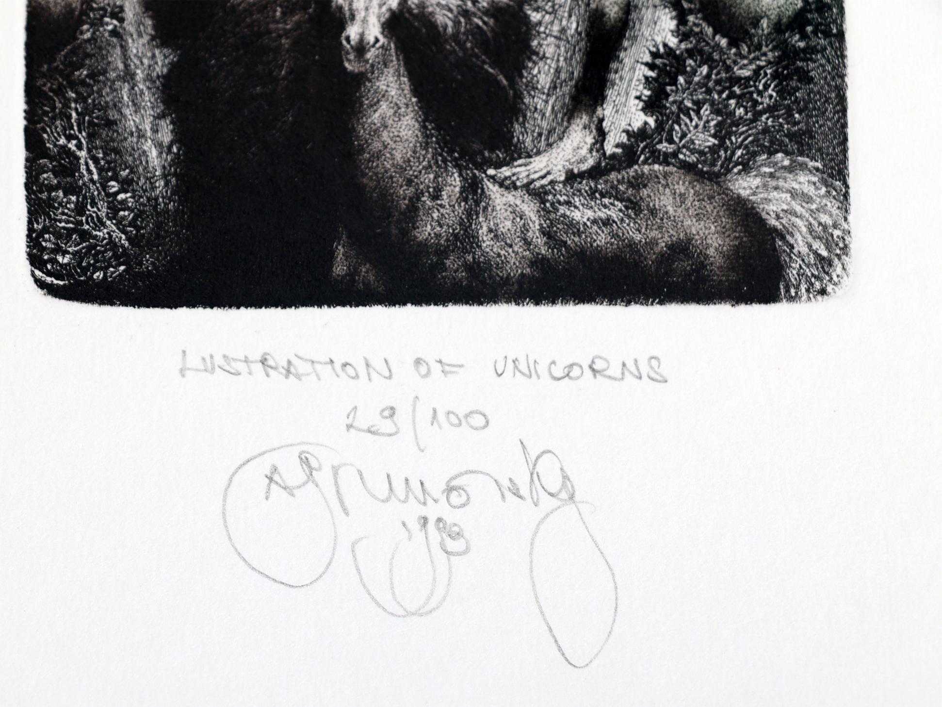 Brunovsky, A., 2 exlibris (Wout Meulemans, 1993, genummerd en gesigneerd, 1993, 'unicorn', 130x100 mm, plus: Miets Meulemans, 1993, genummerd en gesigneerd.