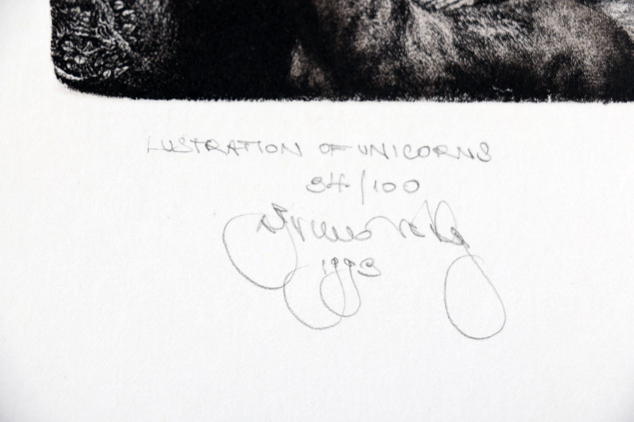 Brunovsky, A., 2 exlibris (Wout Meulemans, 1993, genummerd en gesigneerd, 1993, 'unicorn', 130x100 mm, plus: Miets Meulemans, 1993, genummerd en gesigneerd.