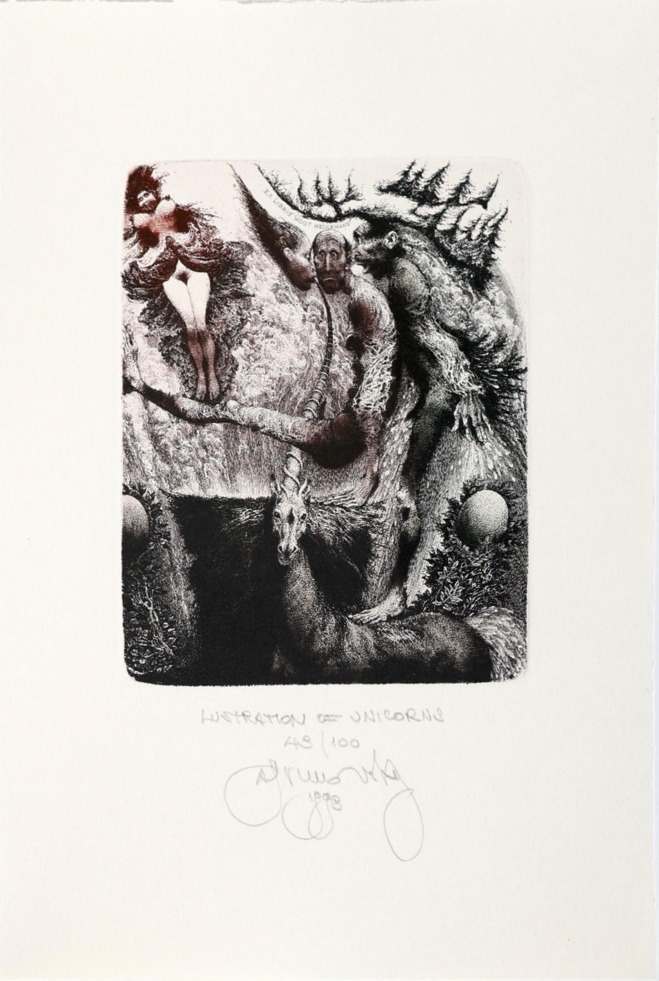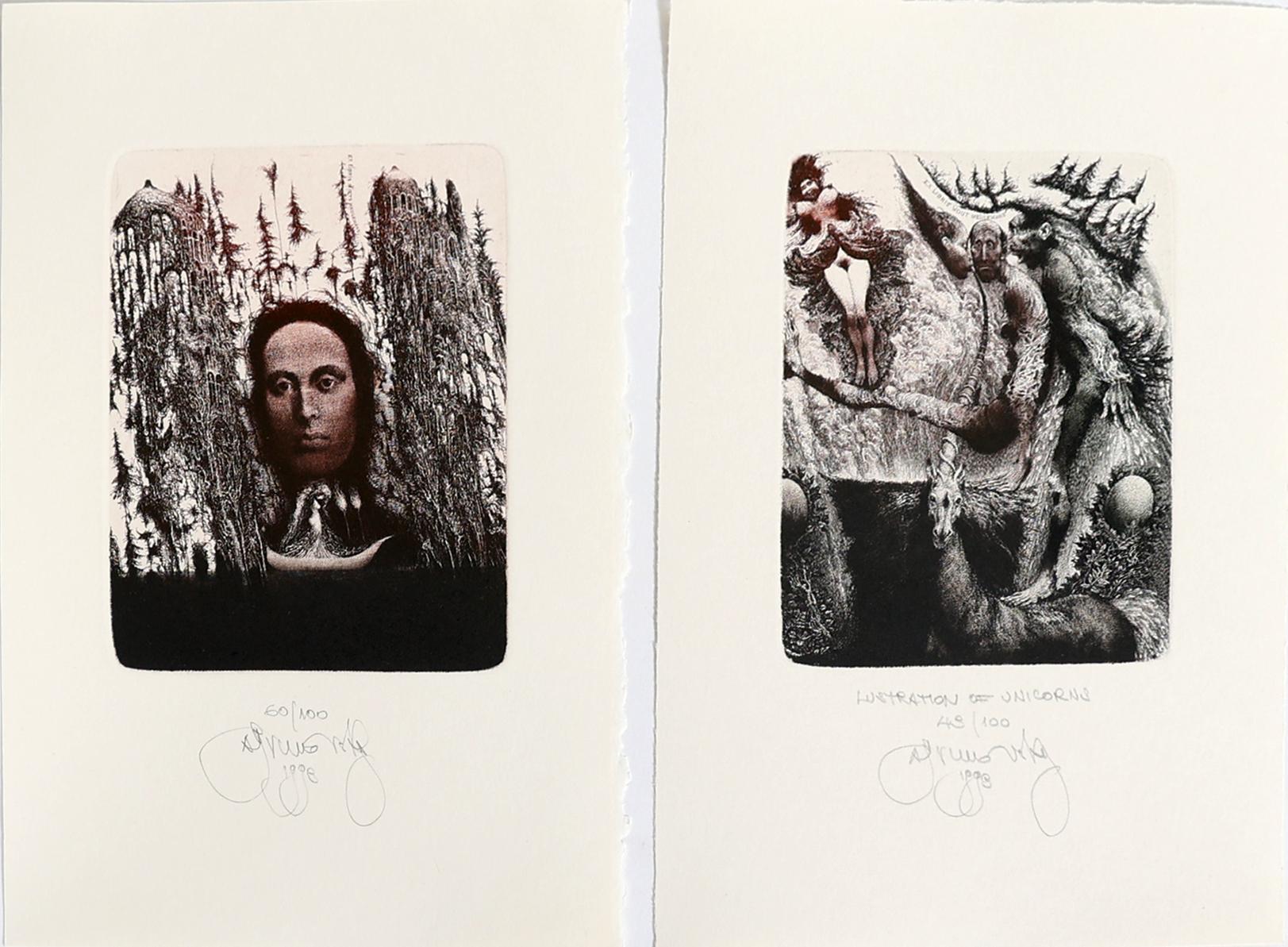 Brunovsky, A., 2 exlibris (Wout Meulemans, 1993, genummerd en gesigneerd, 1993, 'unicorn', 130x100 mm, plus: Miets Meulemans, 1993, genummerd en gesigneerd.