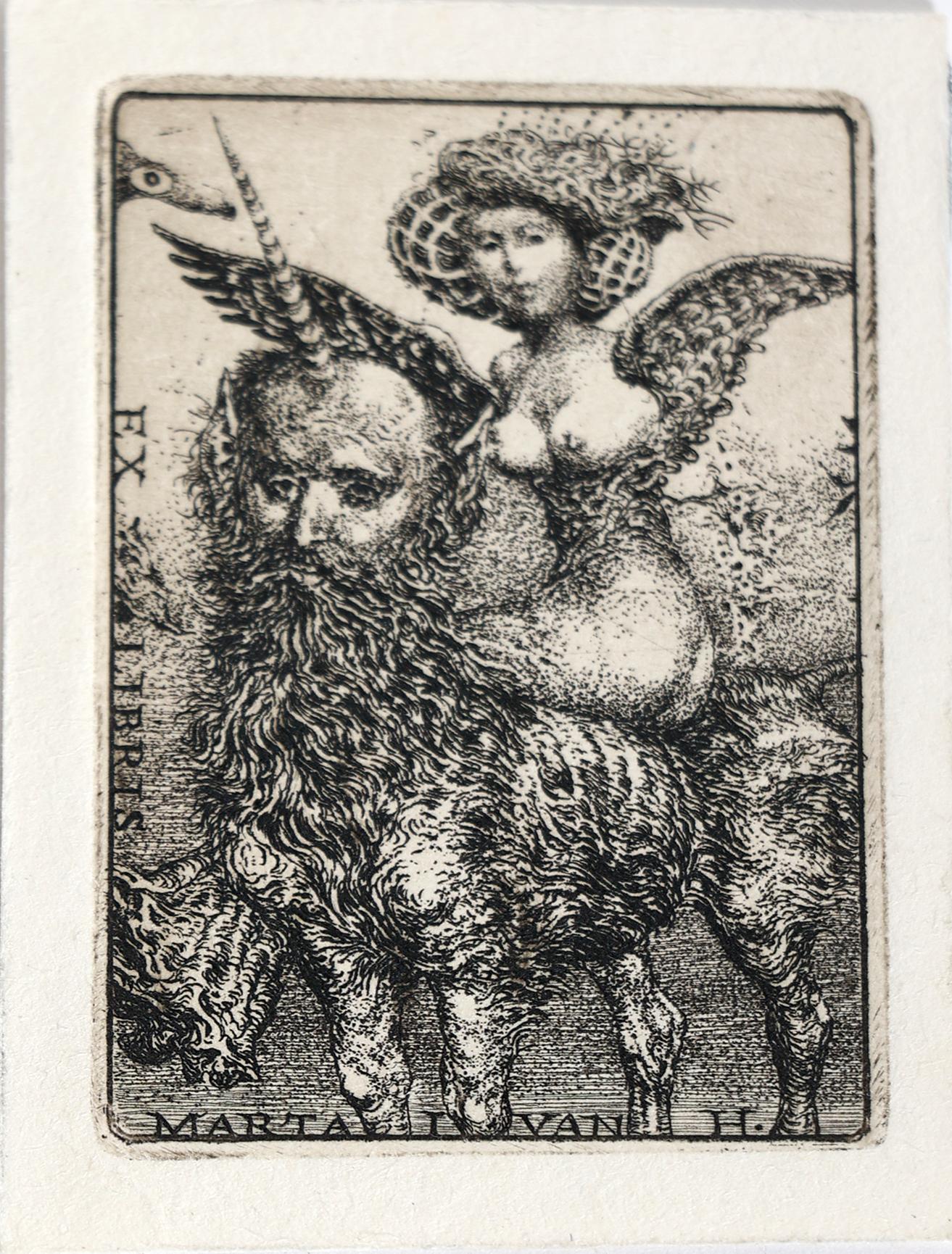 Brunovsky, A., 3 exlibris (Miets Meulemans, 1993, genummerd en gesigneerd, plus: exlibris Marta T. van H - opus 19 - , niet gesigneerd, C3, plus: exlibris Ichigoro Uchida, litho - kleur-, gesigneerd.