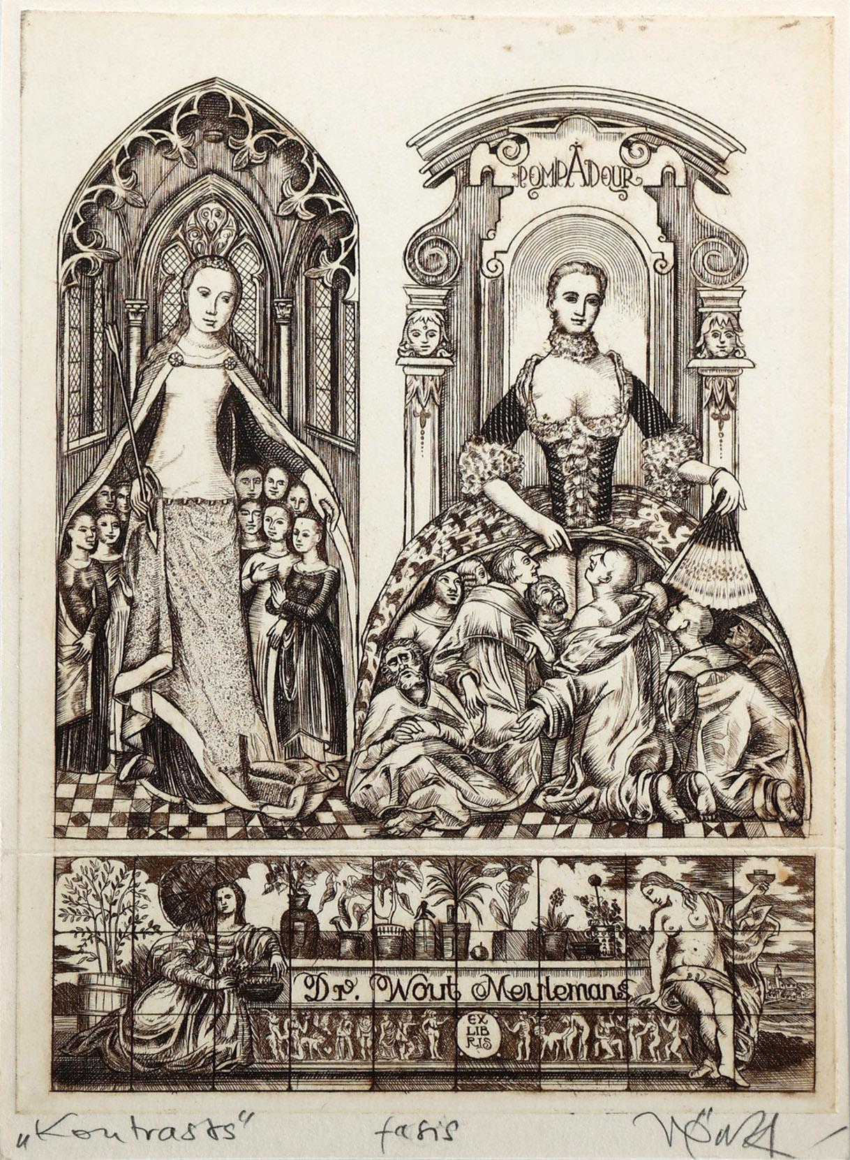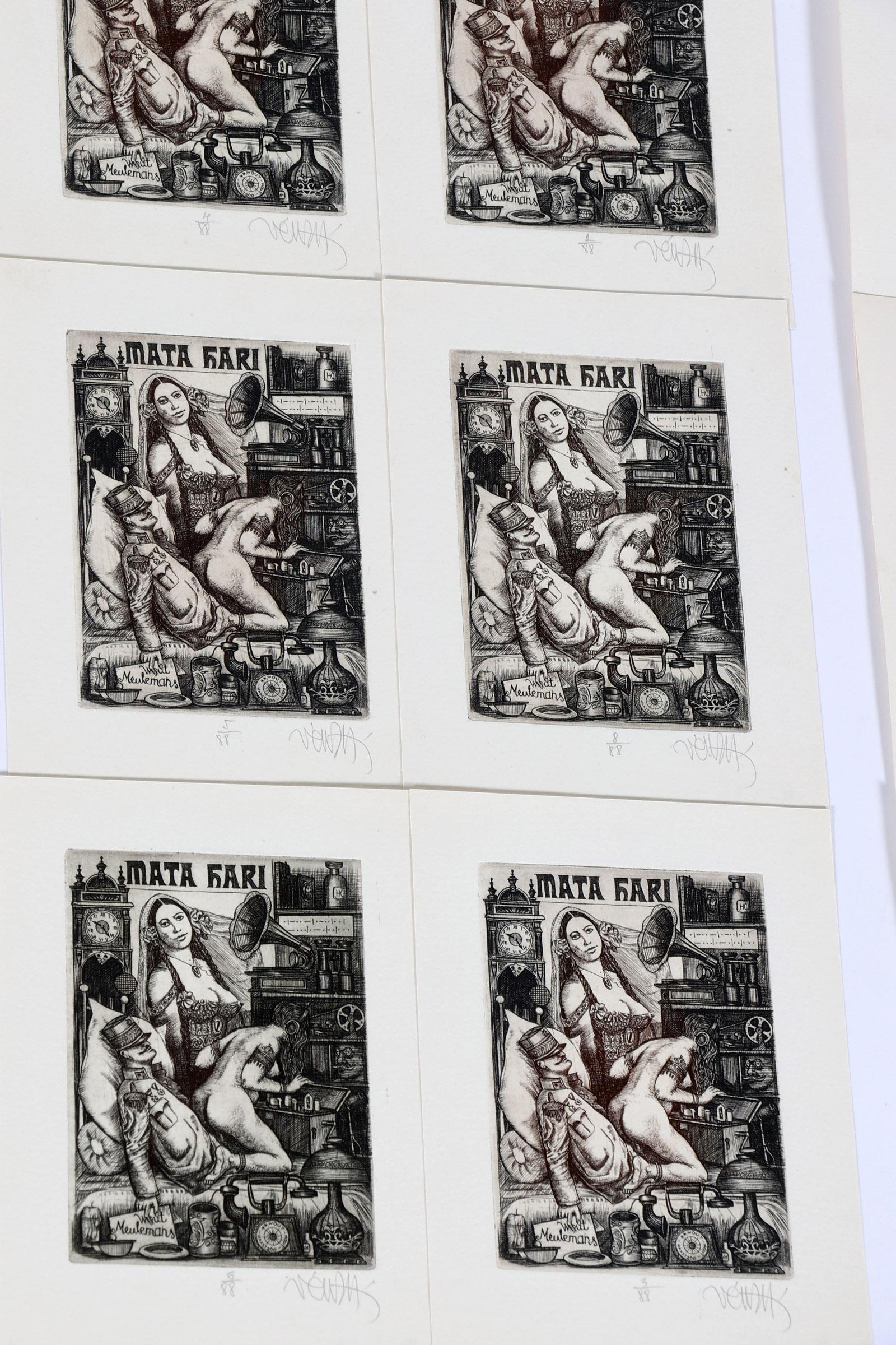 Ven, Z. plm. 35 exlibris op naam van Meulemans, C3, gesigneerd, enkele met correspondentie van Ven op de achterzijde van de prent. Meerdere doubletten, restoplagen.
