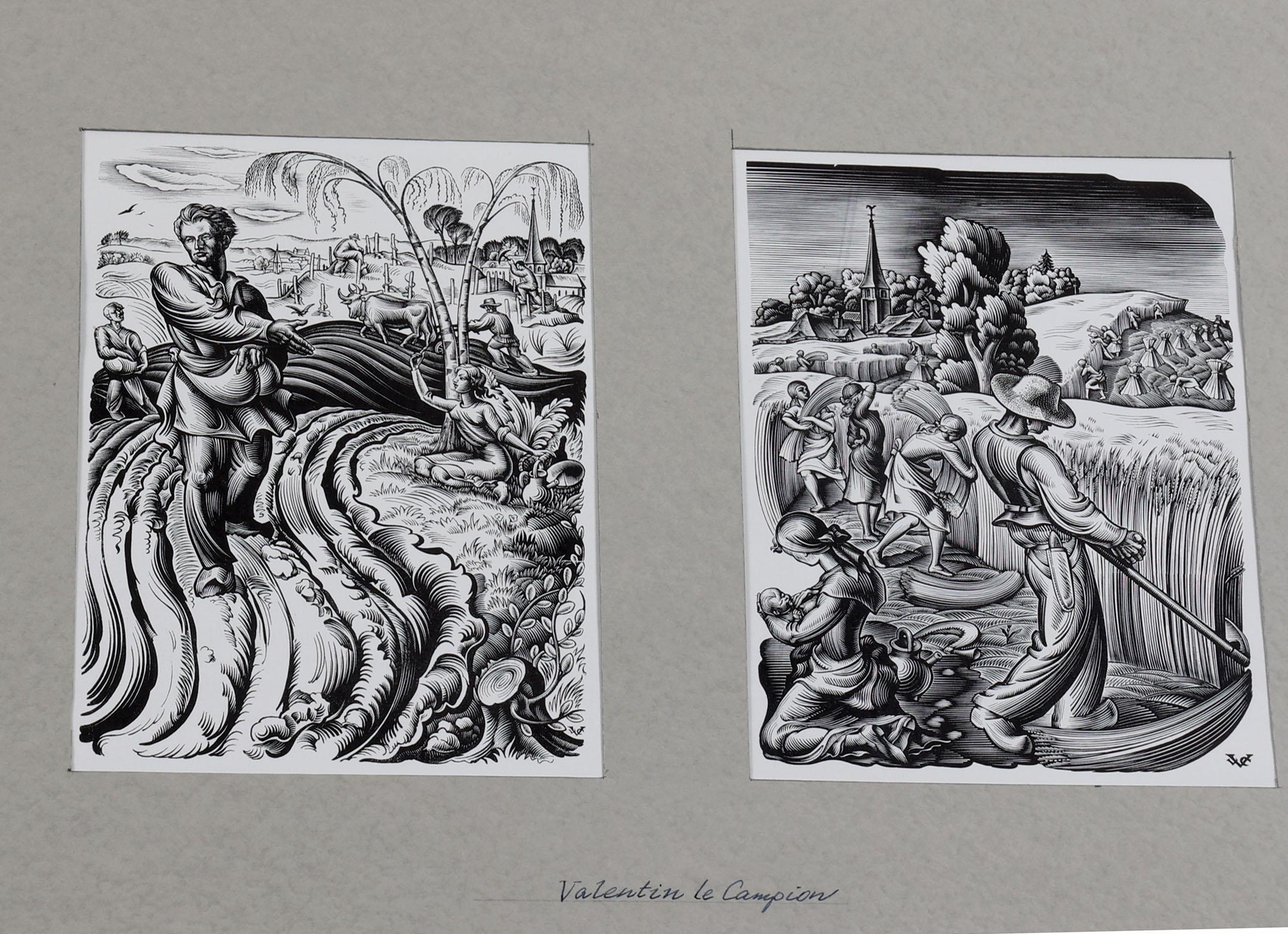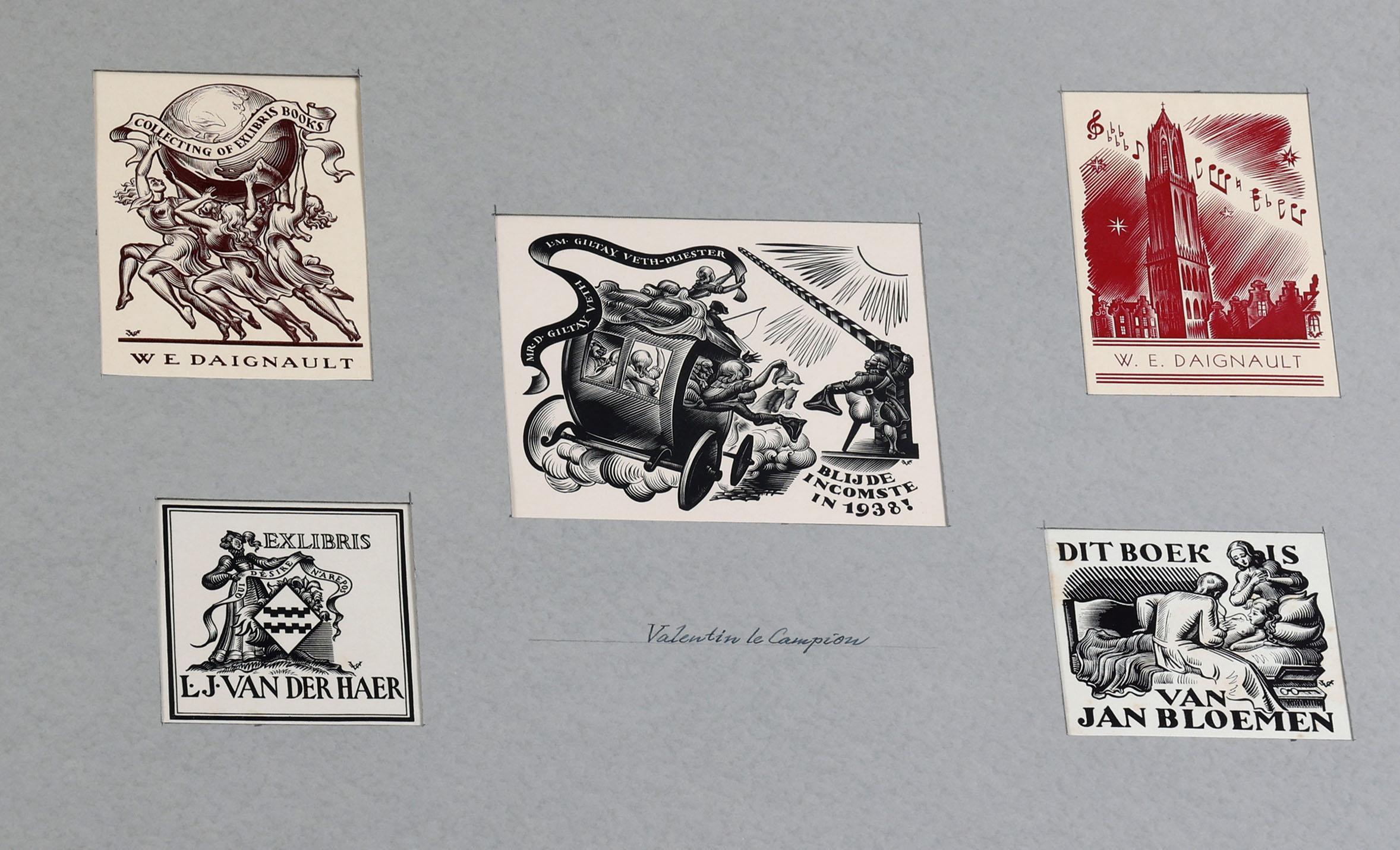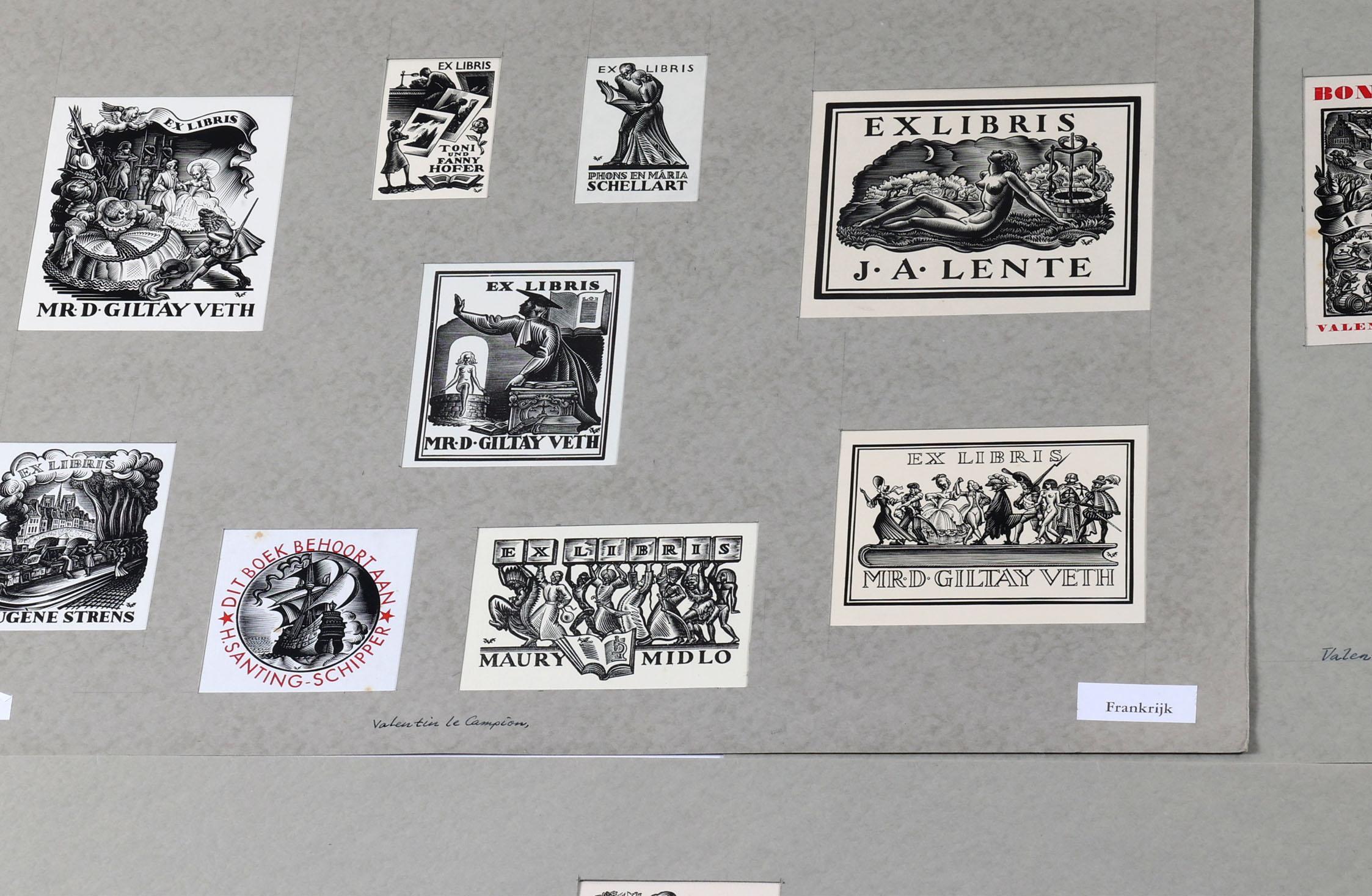 Campion, V. le, 25 x exlibris / kleingrafiek, X1, niet gesigneerd, opgeplakt op grote vellen.