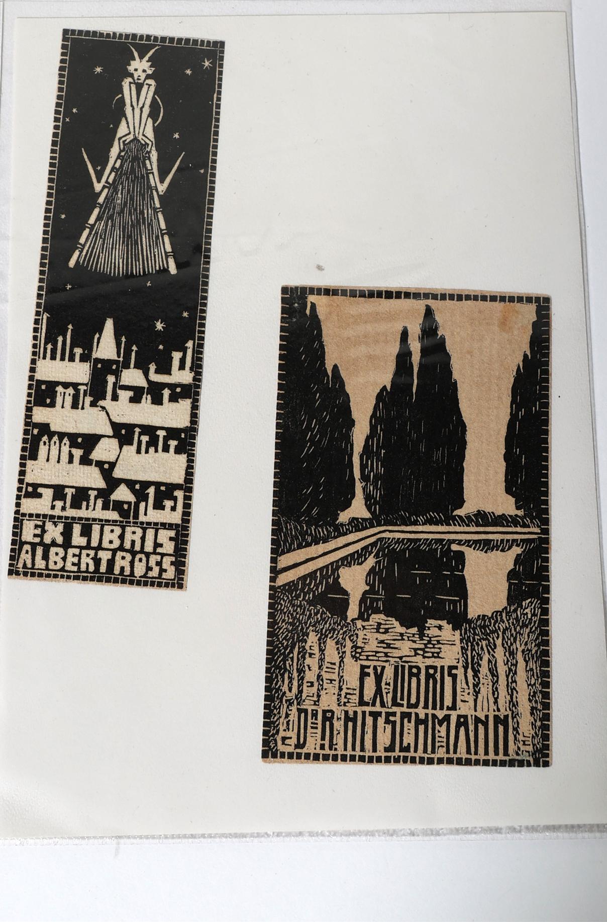 Steinberger-Hitschmann, M., 2 exlibris, X1, niet gesigneerd. Voor Dr. R. Hitschmann en Albert Ross.