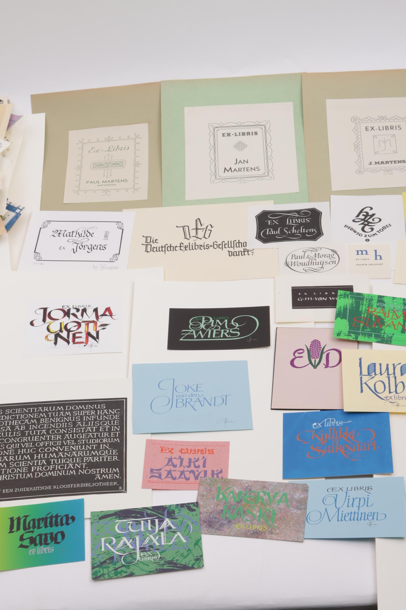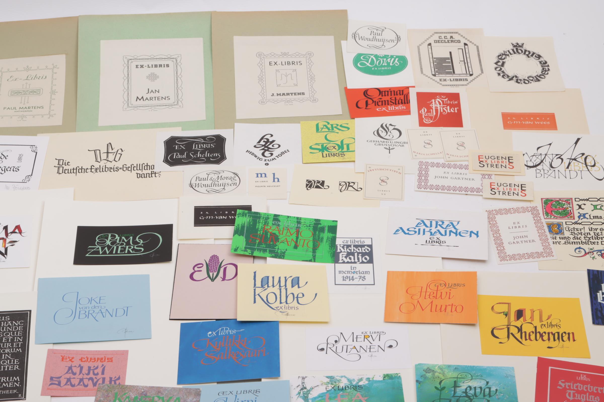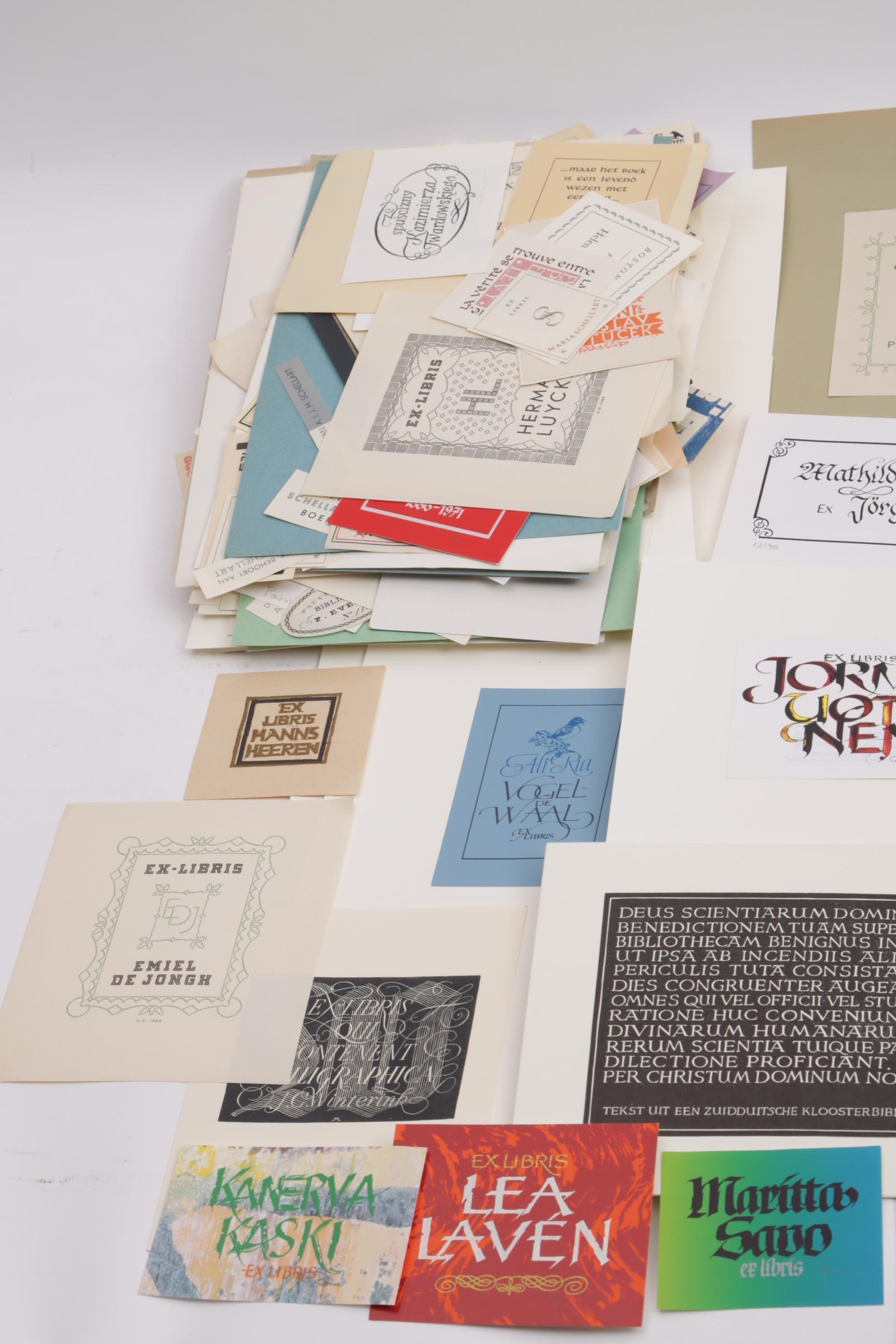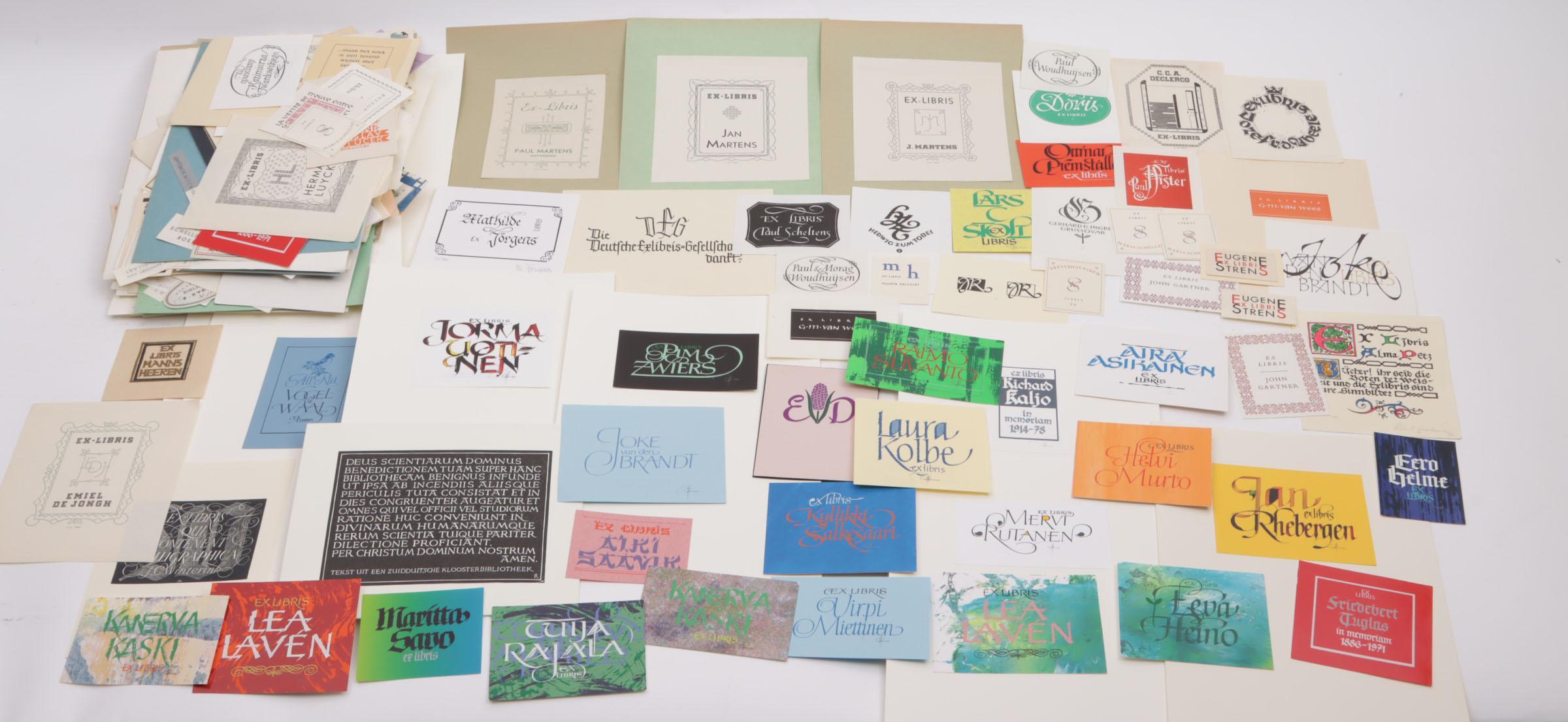 collectie van plm. 300 exlibris / kleingrafiek, typografisch / kalligrafie. Deels gesigneerd, deels opgeplakt
