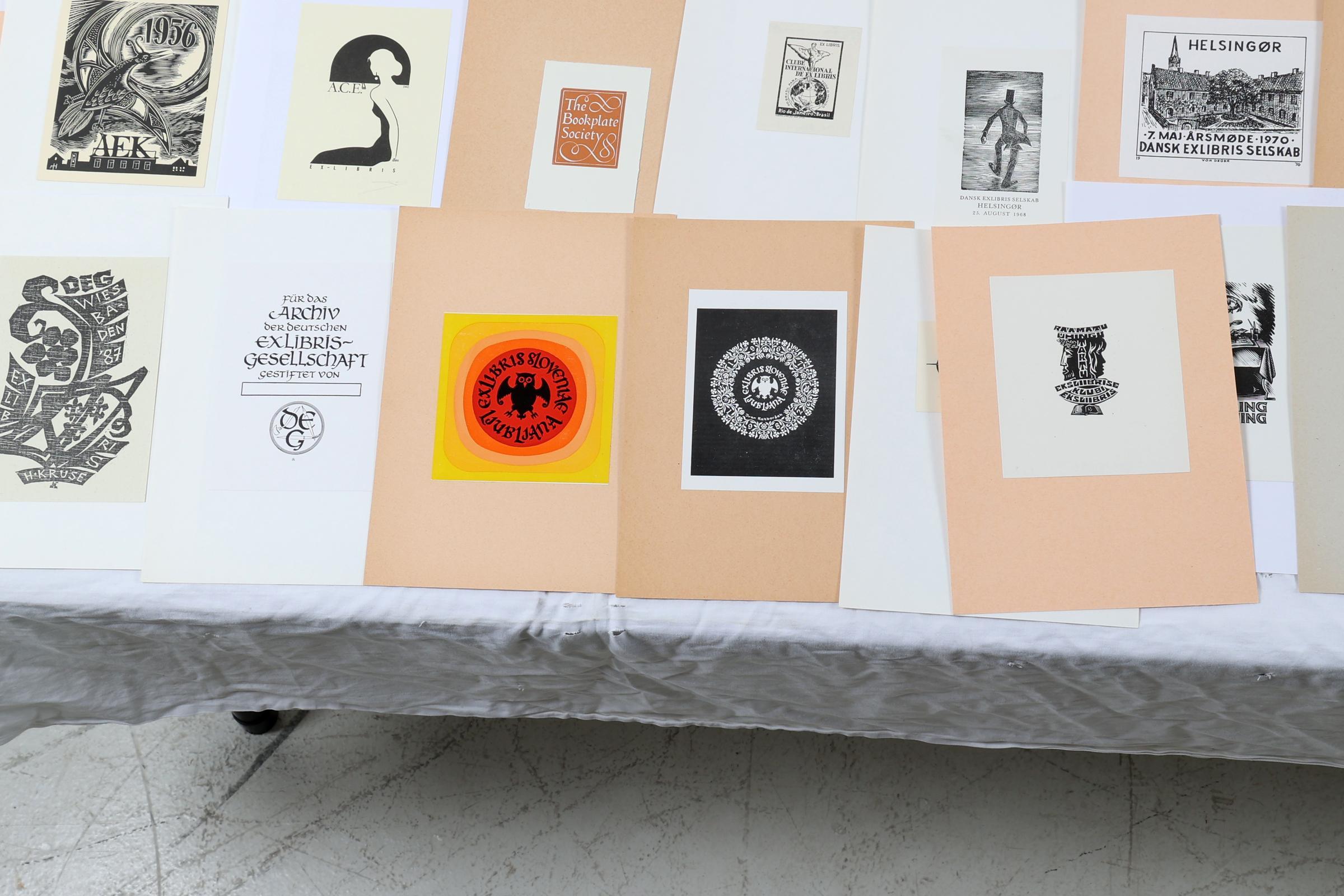 collectie van plm. 60 exlibris, thema: verenigingen / clubs. Plm. 50 x hoogdruk / vlakdruk, rest diepdruk.