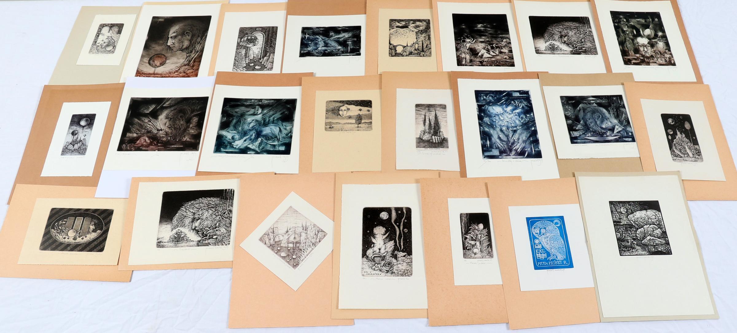 Bugan, Zd., plm. 23 exlibris, 21 x diepdruk, 2 x hoogdruk. Alle gesigneerd. Opgeplakt.