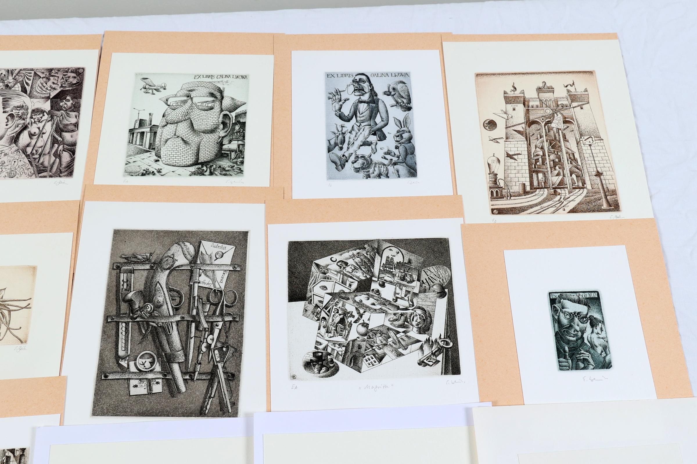 Beitz, E., plm. 18 exlibris (1 x gelegenheidsgrafiek), diepdrukken, alle gesigneerd, opgeplakt. Voor o.a. Beitz, Brendicke, Lwowa, Hubert, Moede, Kabelitz.