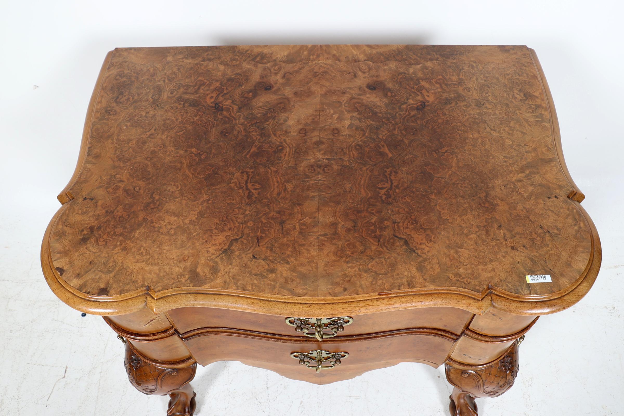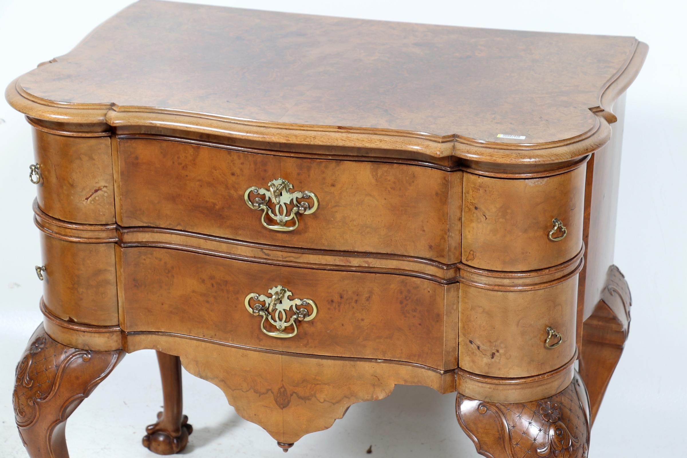 Oude wortelnotenhouten commode met 6 laden rustend op klauwpoten, Chippendale-stijl, h.76 x b.77 x d.51 cm.