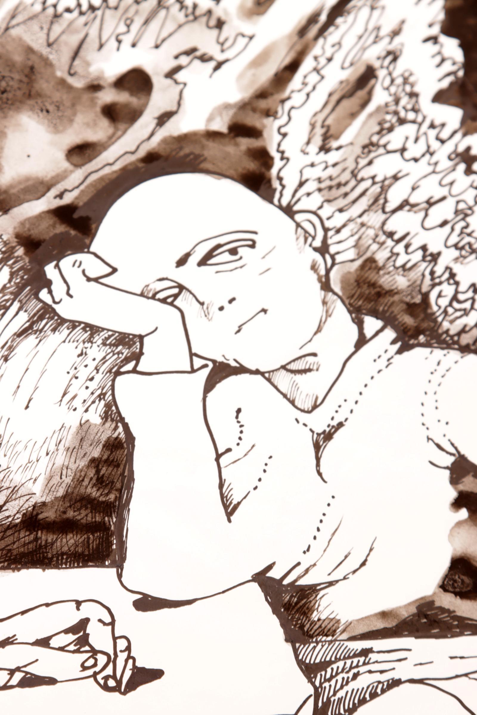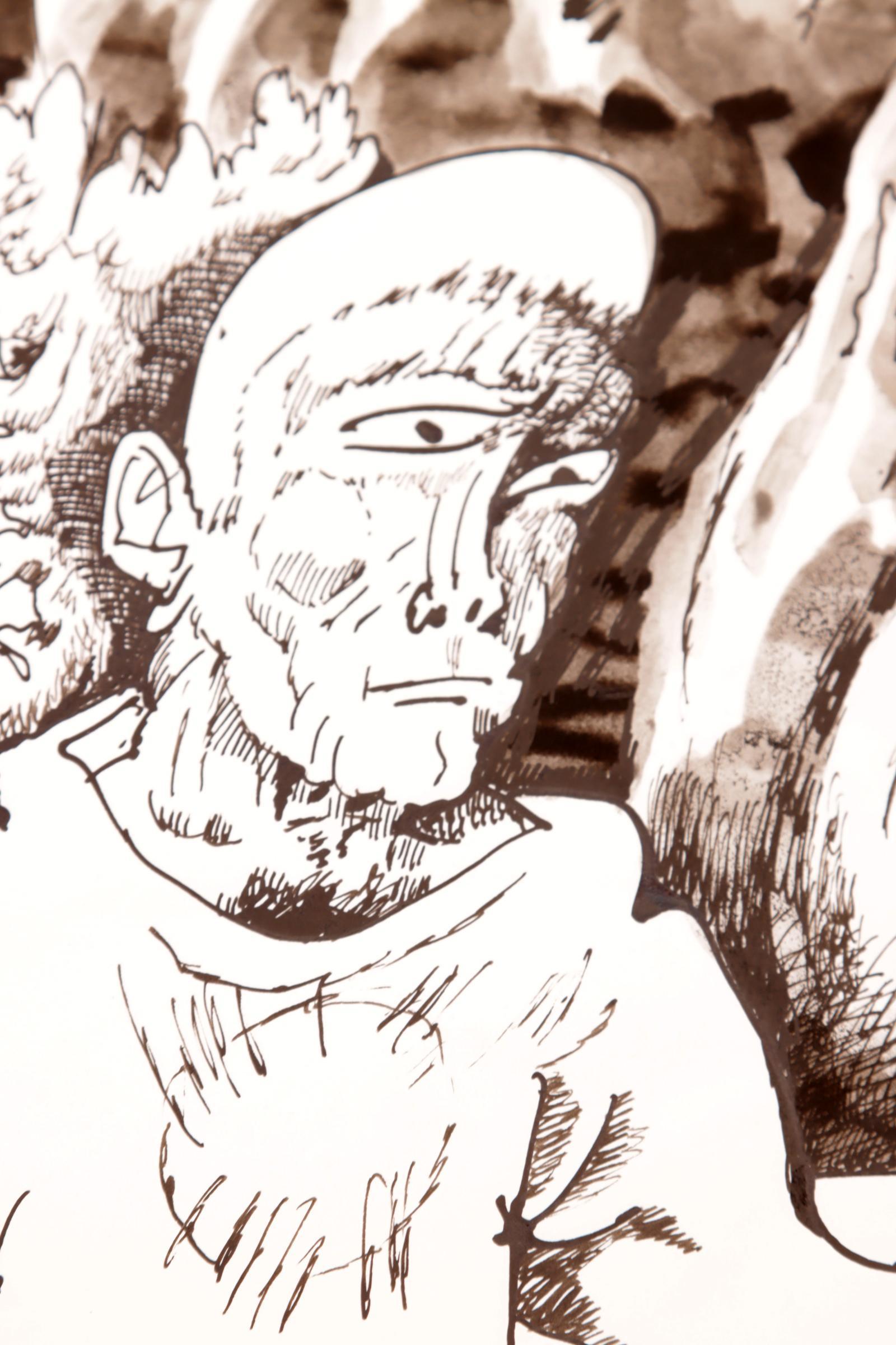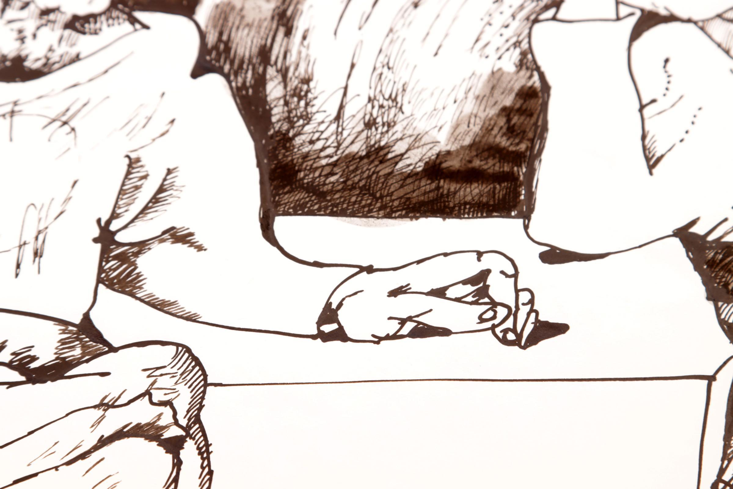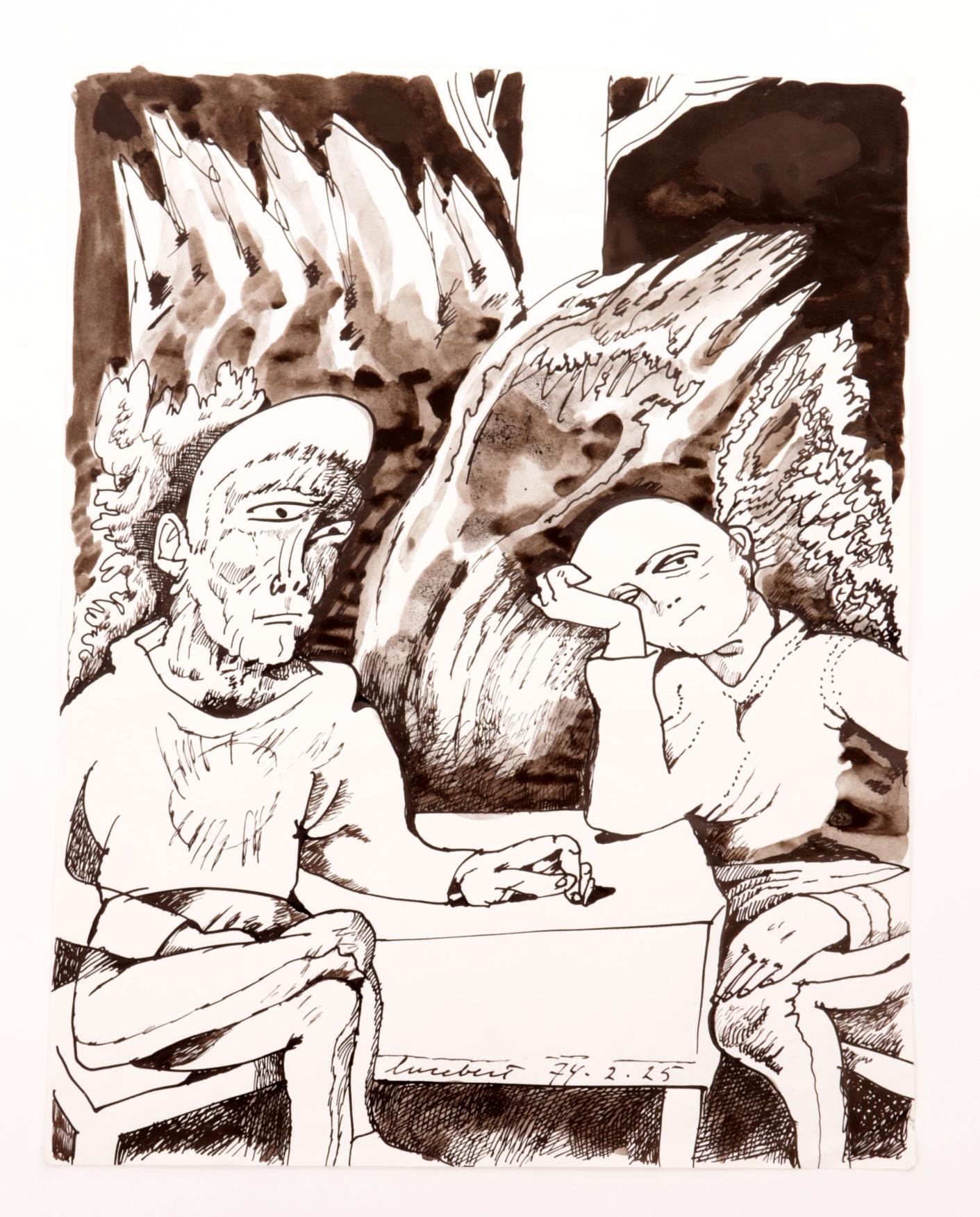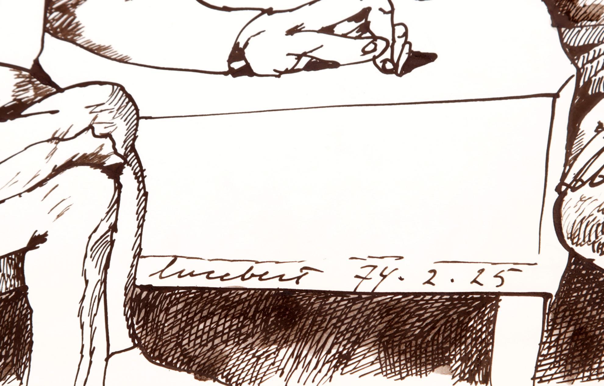 'Lucebert' alias van Lubertus Jacobus Swaanswijk (1924-1994), Denkers aan tafel, originele inkttekening, 27 x 21 cm., gesign. en gedateerd 74.2.25