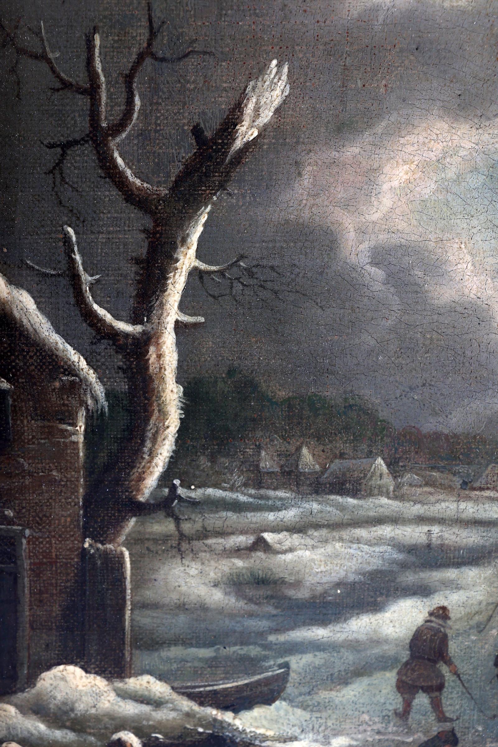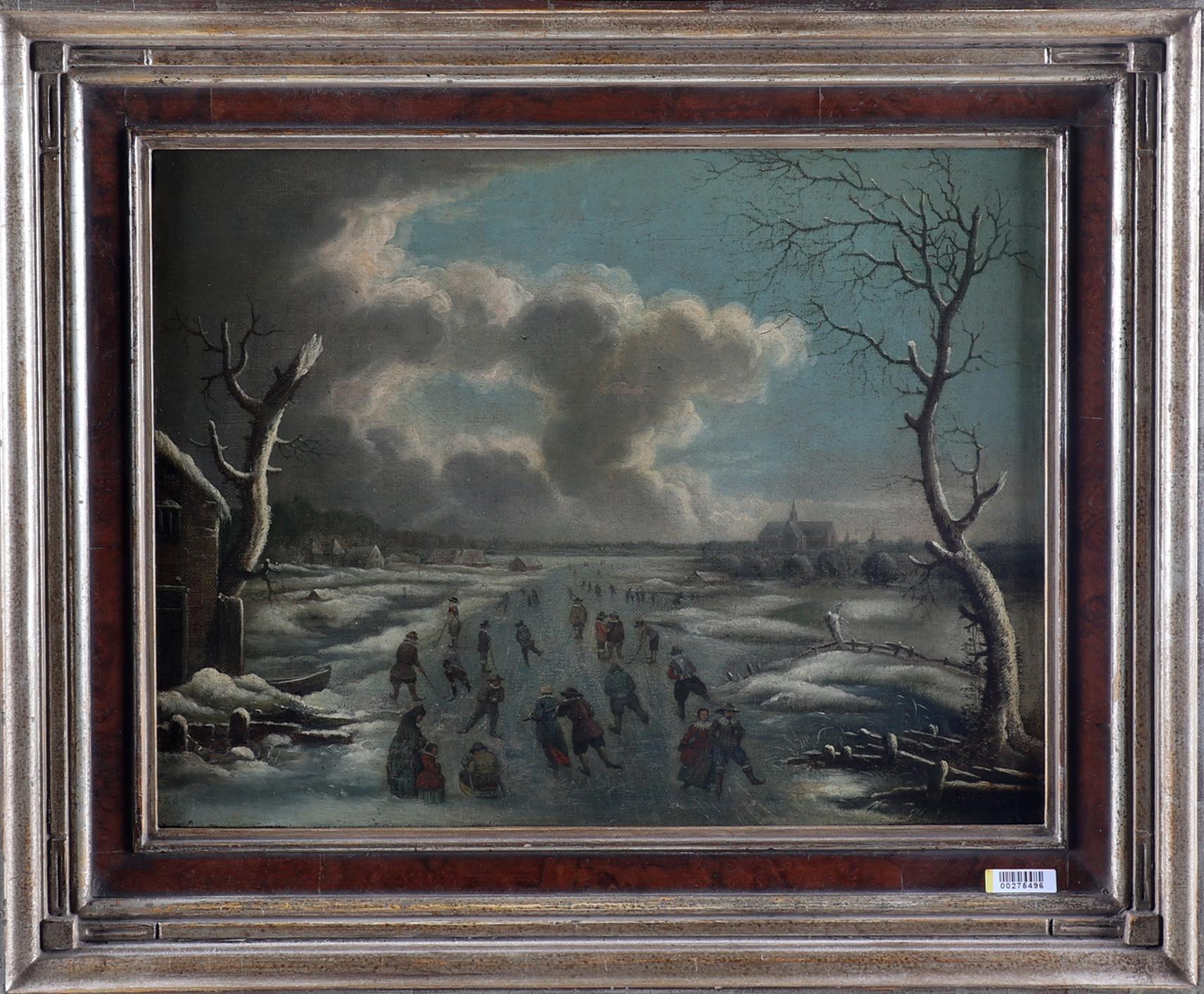 Onb.meester, IJsgezicht met personen, olieverf op doek, 42 x 32,5 cm., 18e eeuw