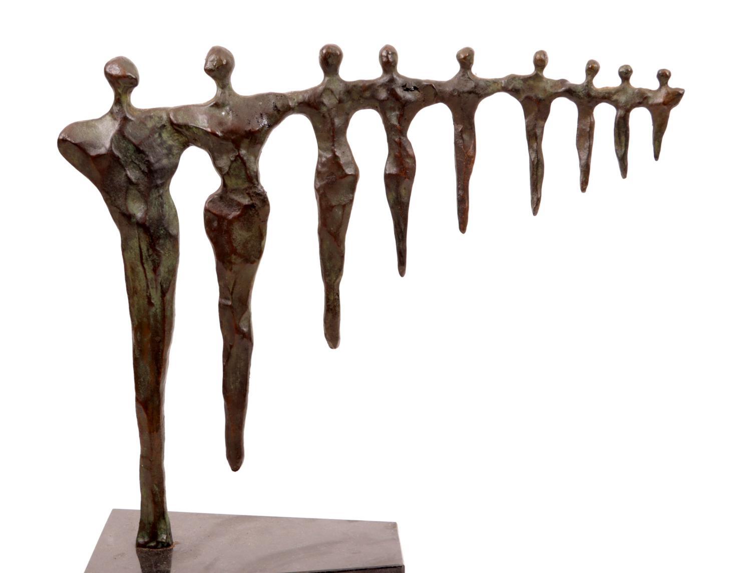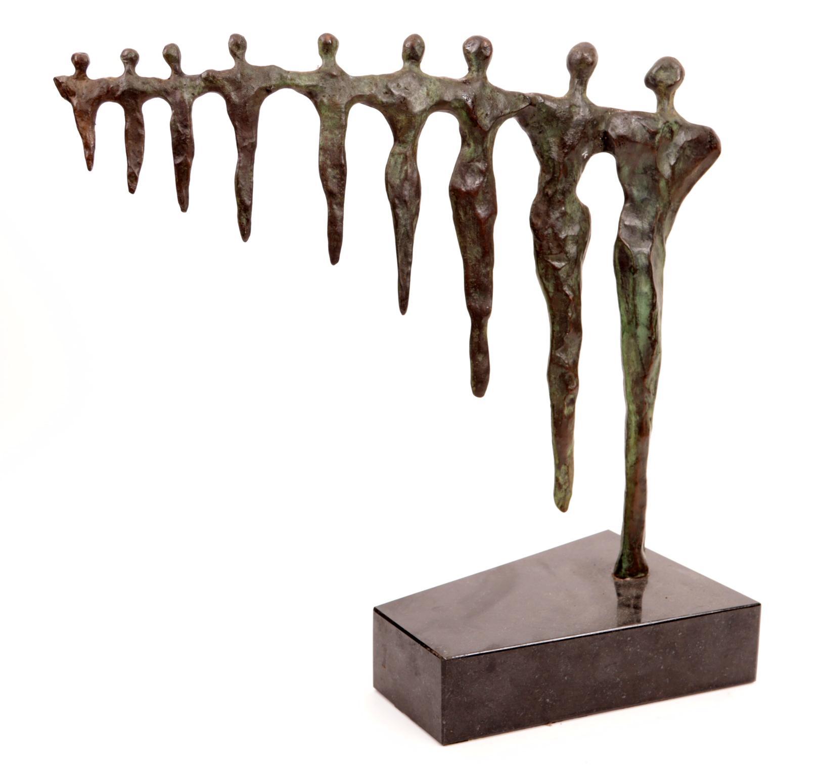 Onb.meester, Bronzen (van groot naar klein) sculptuur rustend op hardstenen voetstuk, h.37 x b.37 x d.14 cm.