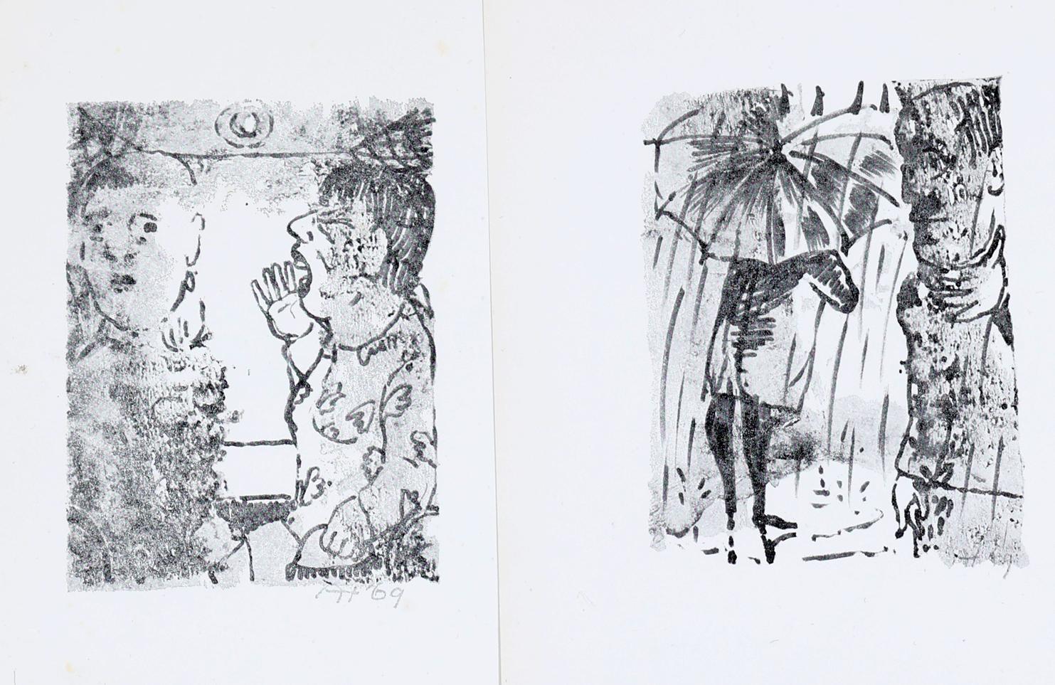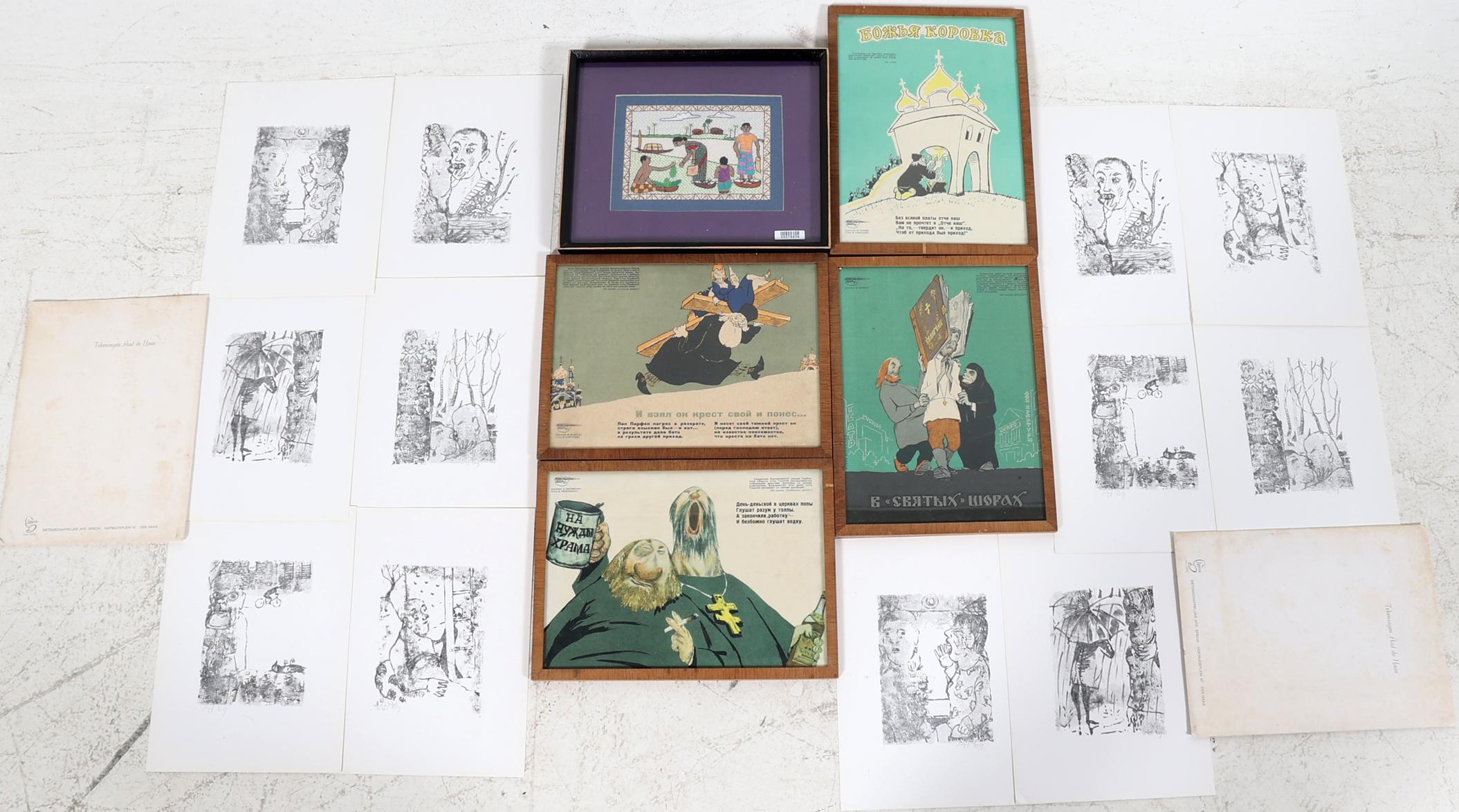 Koop van : 4 Russische prenten, 2 mappen met 6 reproducties van Aad de Haas en een met de hand geborduurd polyester tapijt, Aaron Bangladesh