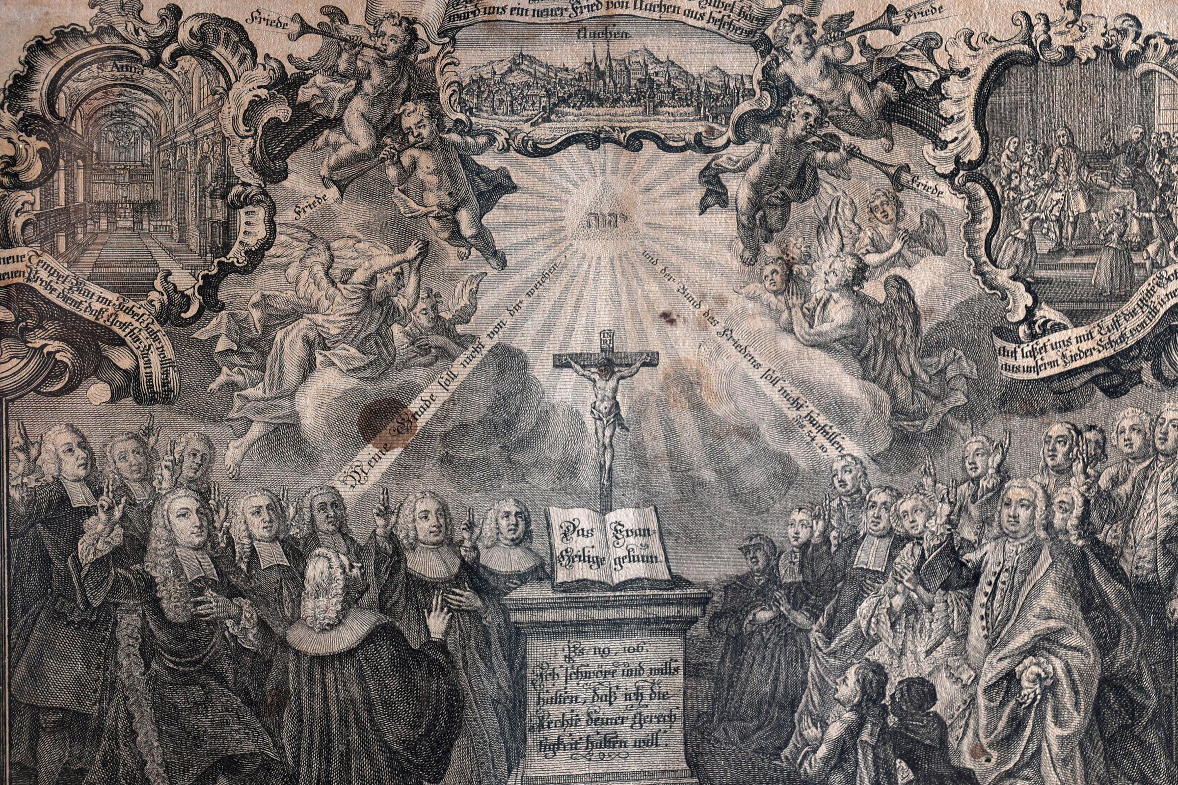 Ingelijste religieuze prent of aflaatbrief, 50 x 34 cm., provenance particuliere collectie/Kunsthandel Schoonheim