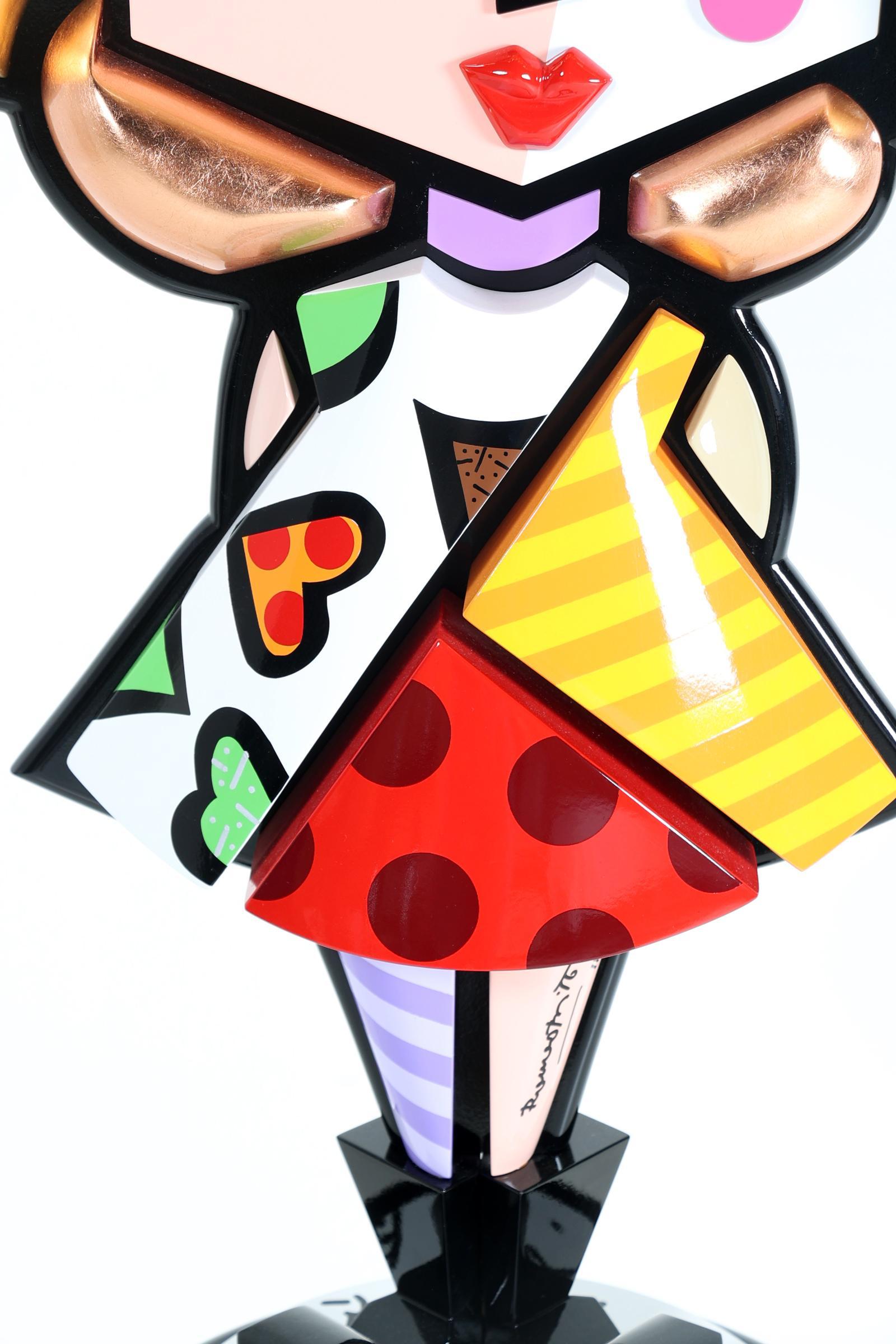 Romero Britto (1963), Meisje op draaistoel, houten sculptuur met marker, hars en emaille, h.140 cm. Provenance: Arte Vista Gallery, Badhoevedorp / privé collectie Nederland / privé collectie Nederland