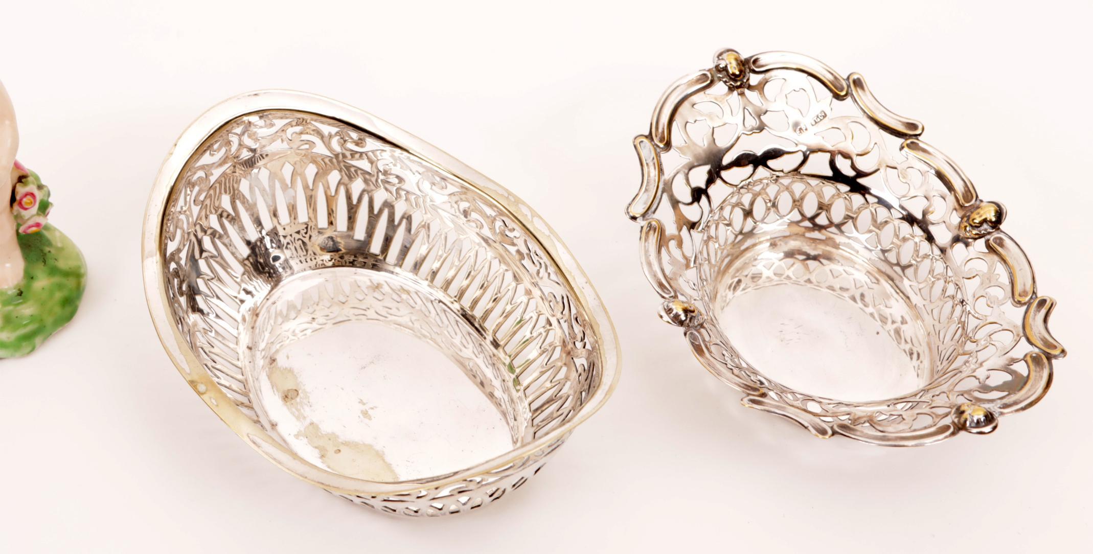 2 Porseleinen beeldjes van bloemenmeisjes en 2 pleet schaaltjes