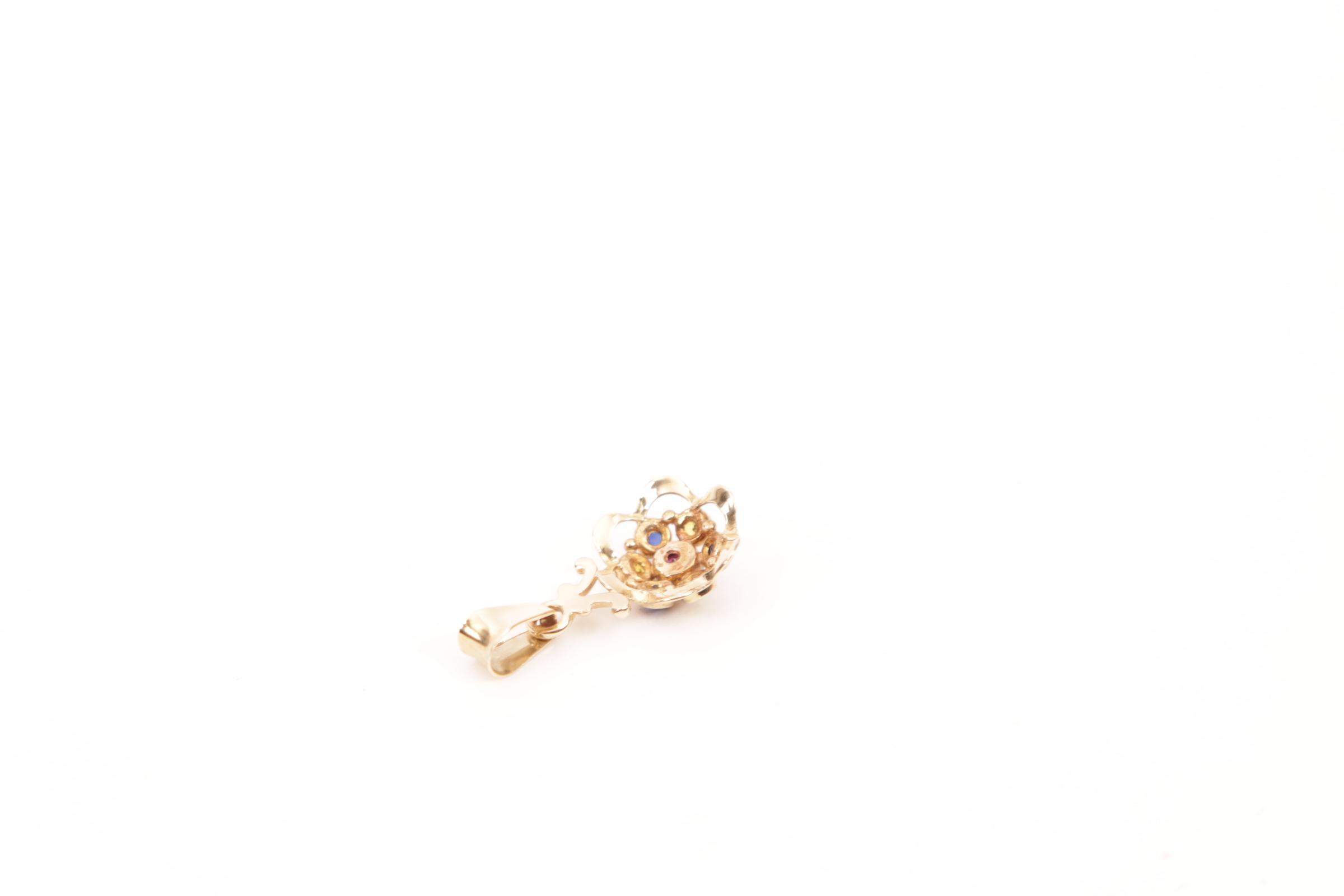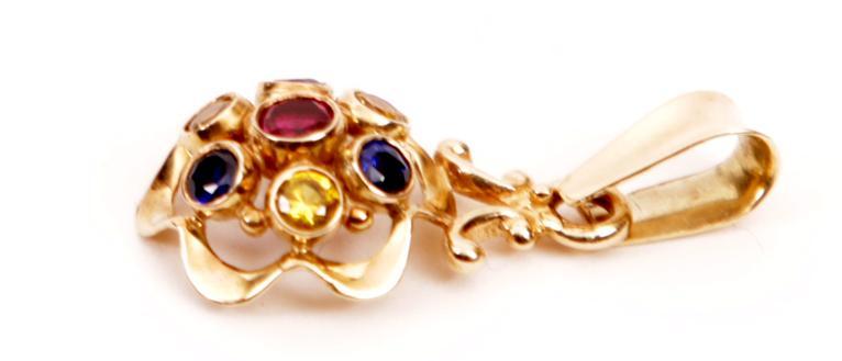 14 Kt. gouden hanger bezet met kleursteentjes, 1,4 gram