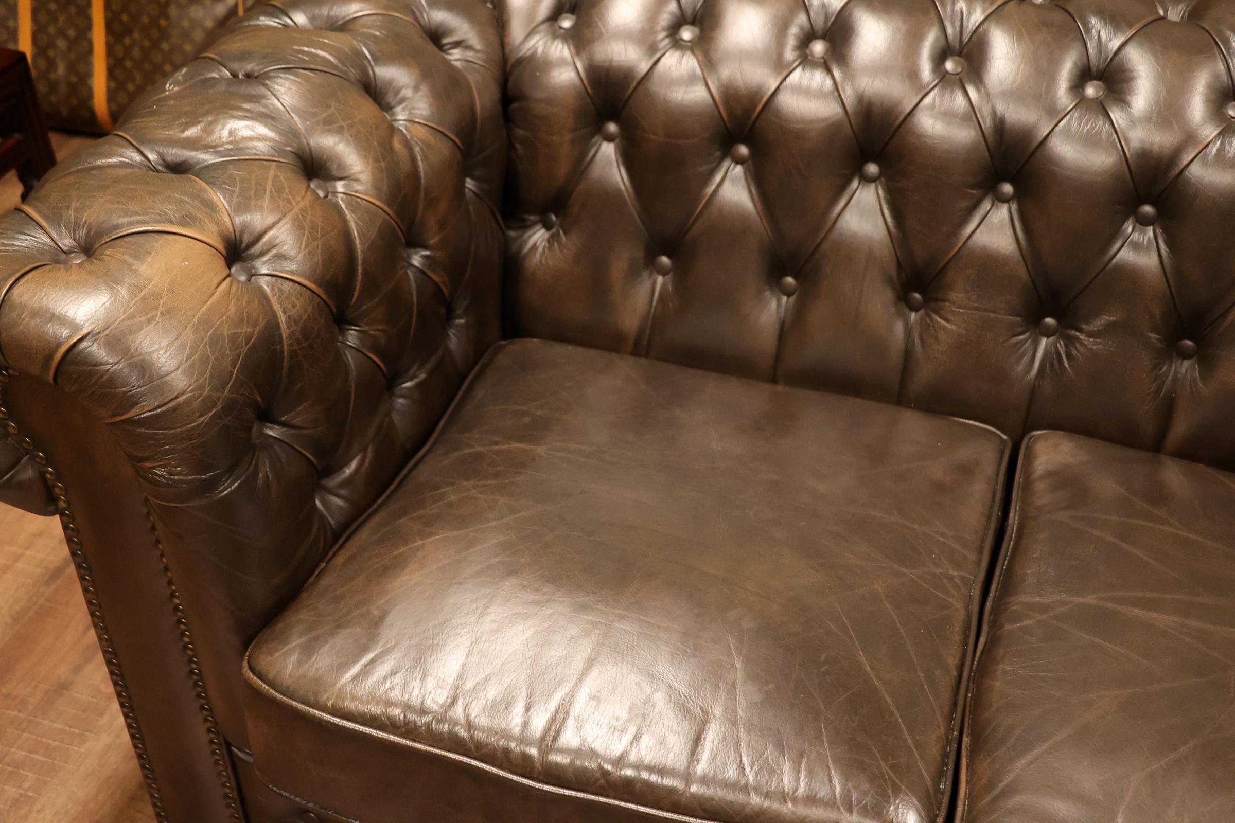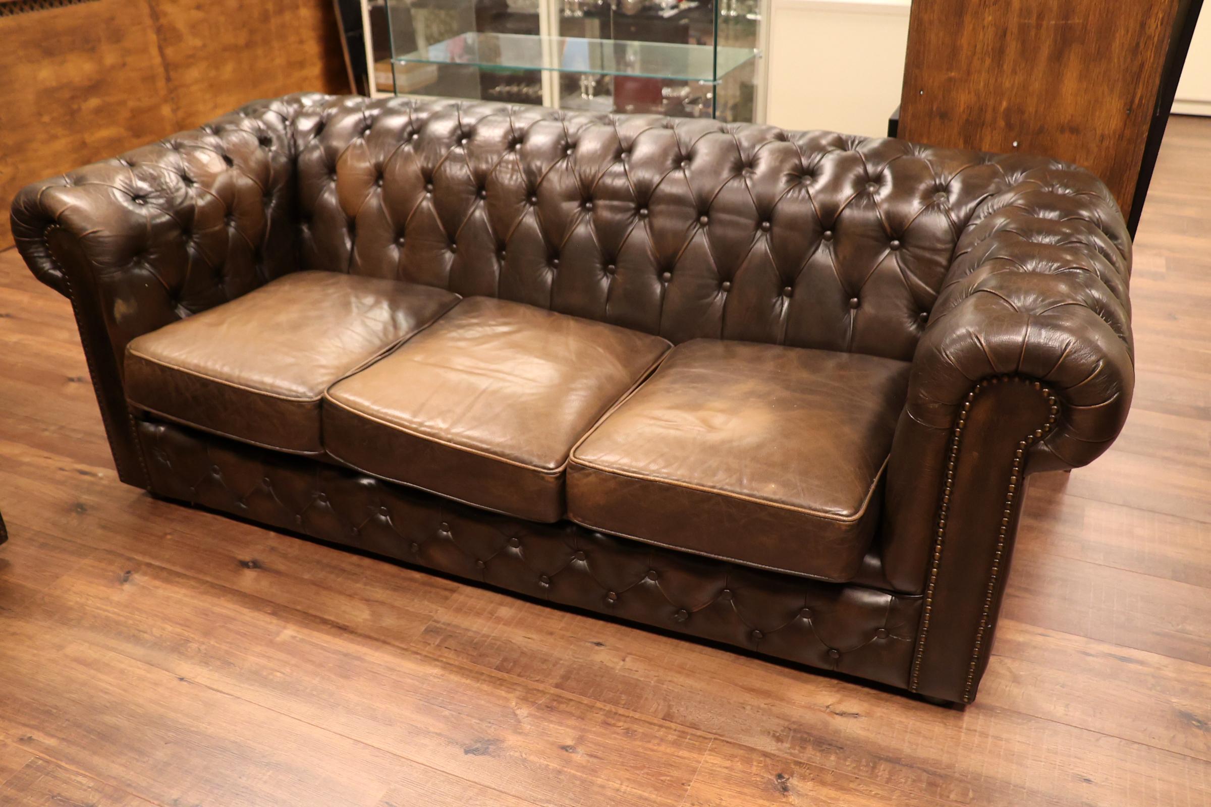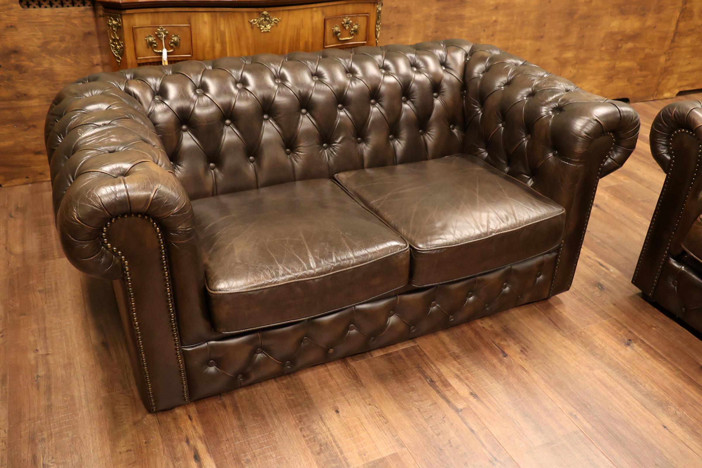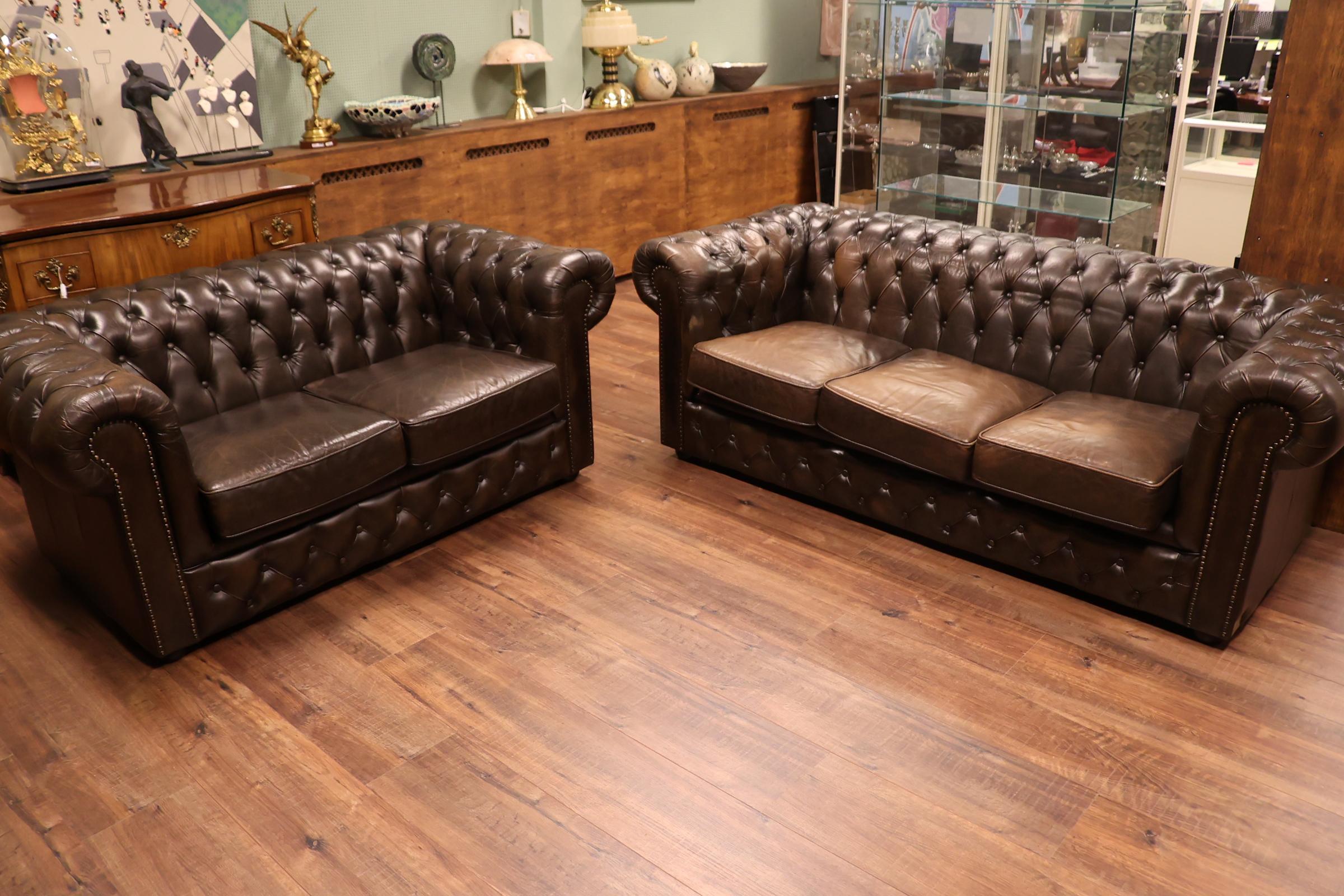 2 Rochester bruin lederen Chesterfield 2 en 3-zitsbank