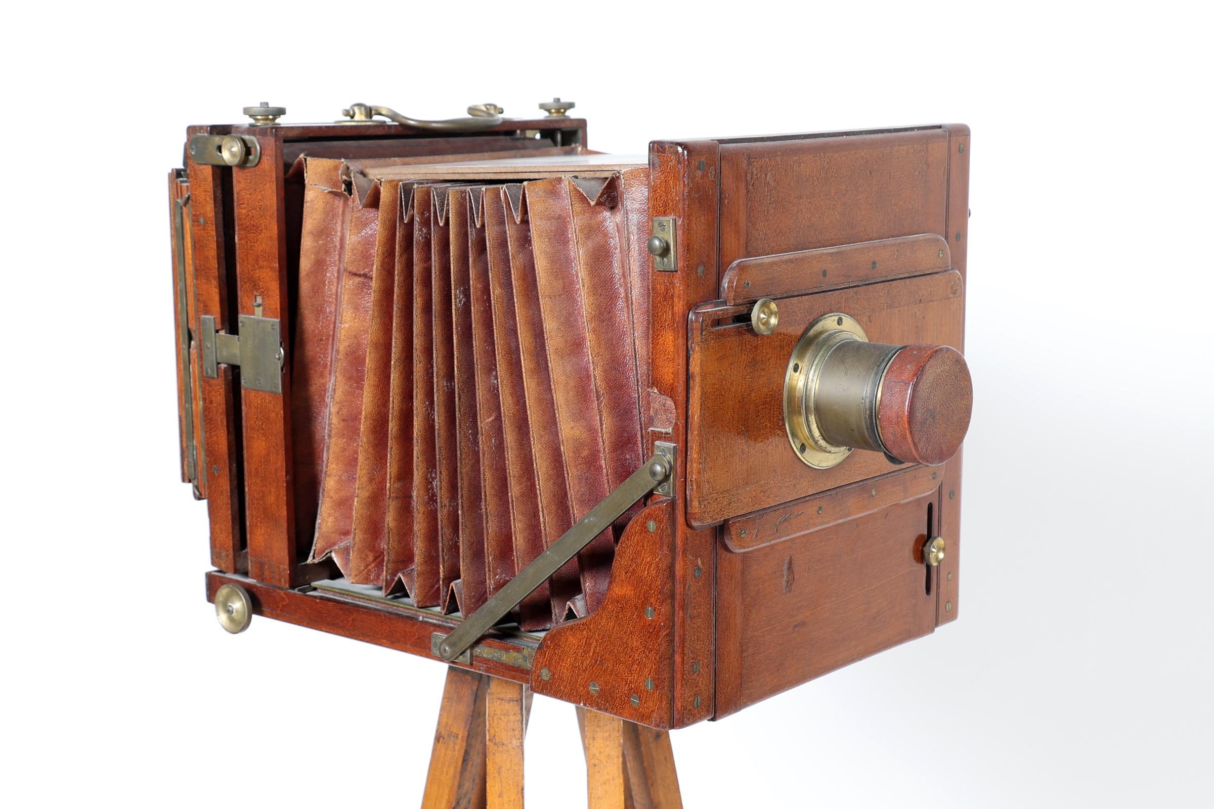 J.H. (John Henry) Dallmeyer, London, Antieke fotocamera op statief en een klassiek dry-plate Engels tailboard ontwerp, Dallmeyer begon zijn zaak rond 1860. Hij werdt een bekende opticien en camera maker. Dallmeyer maakte mooie 'wet plate' camera's in de tweede helft van de 19e eeuw, maar het maken van zijn 'dry plate' camera's begon pas rond 1886.