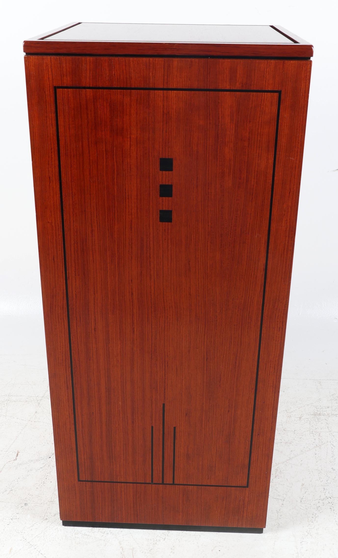 Frits Schuitema, Ingelegde houten Art Deco-stijl zuil, h.90 x b.40 x d.40 cm.