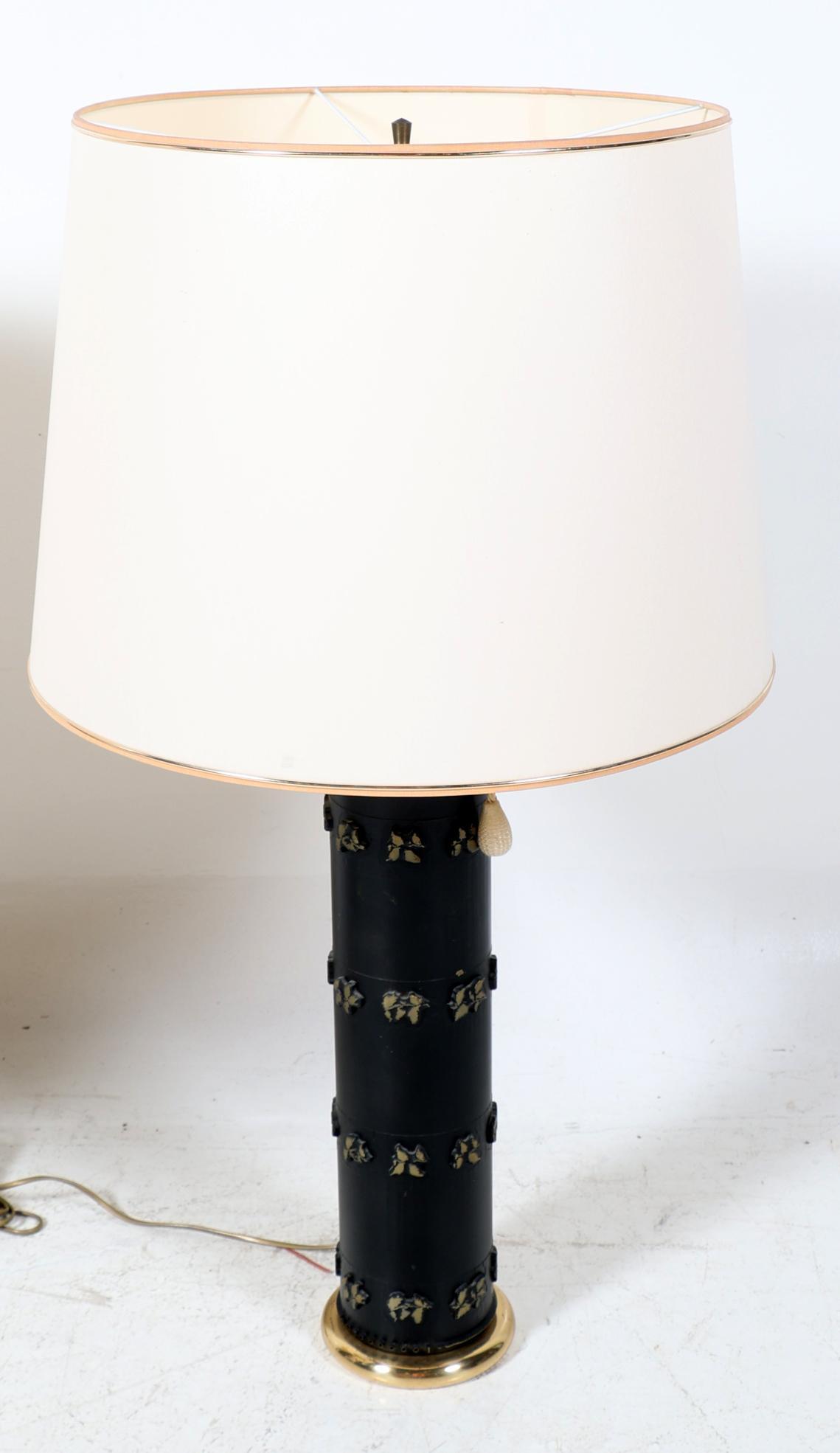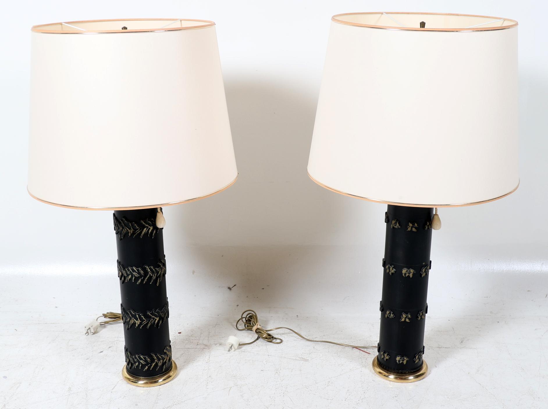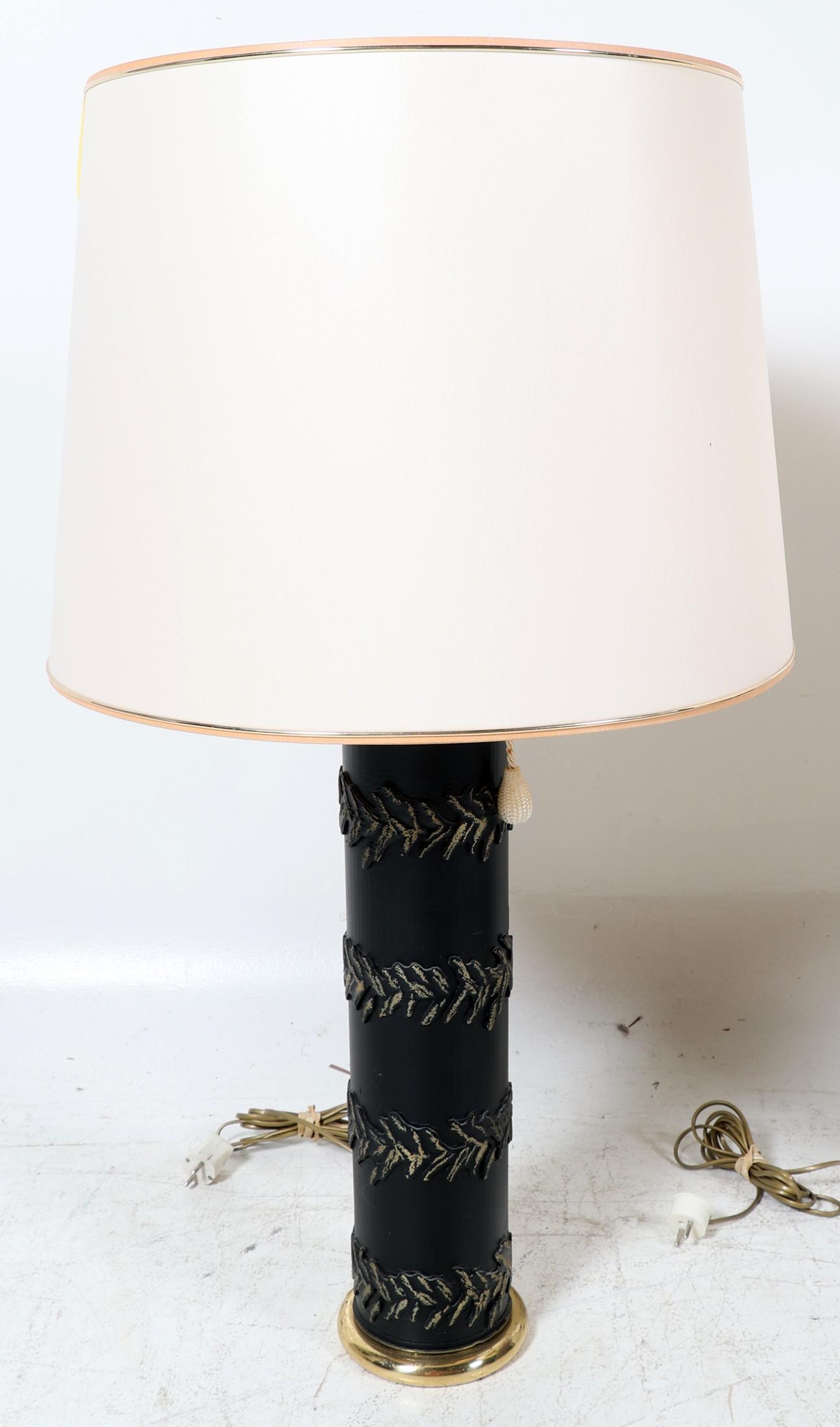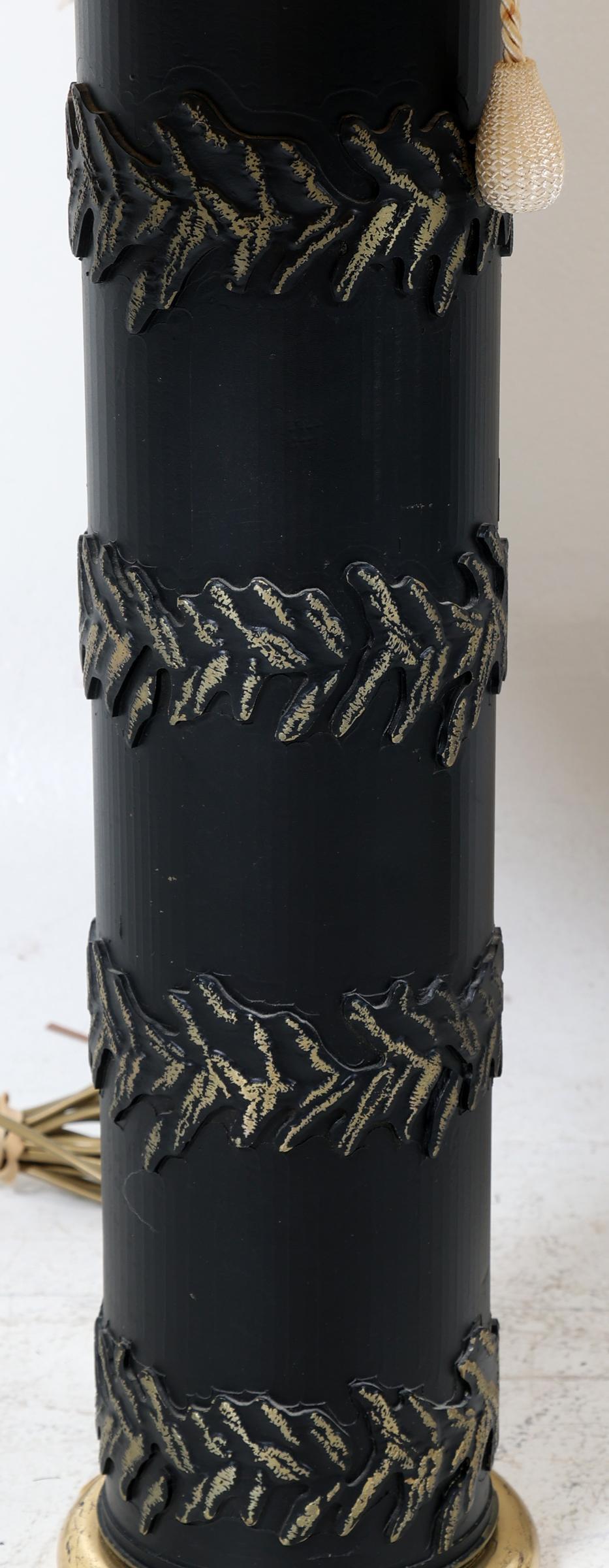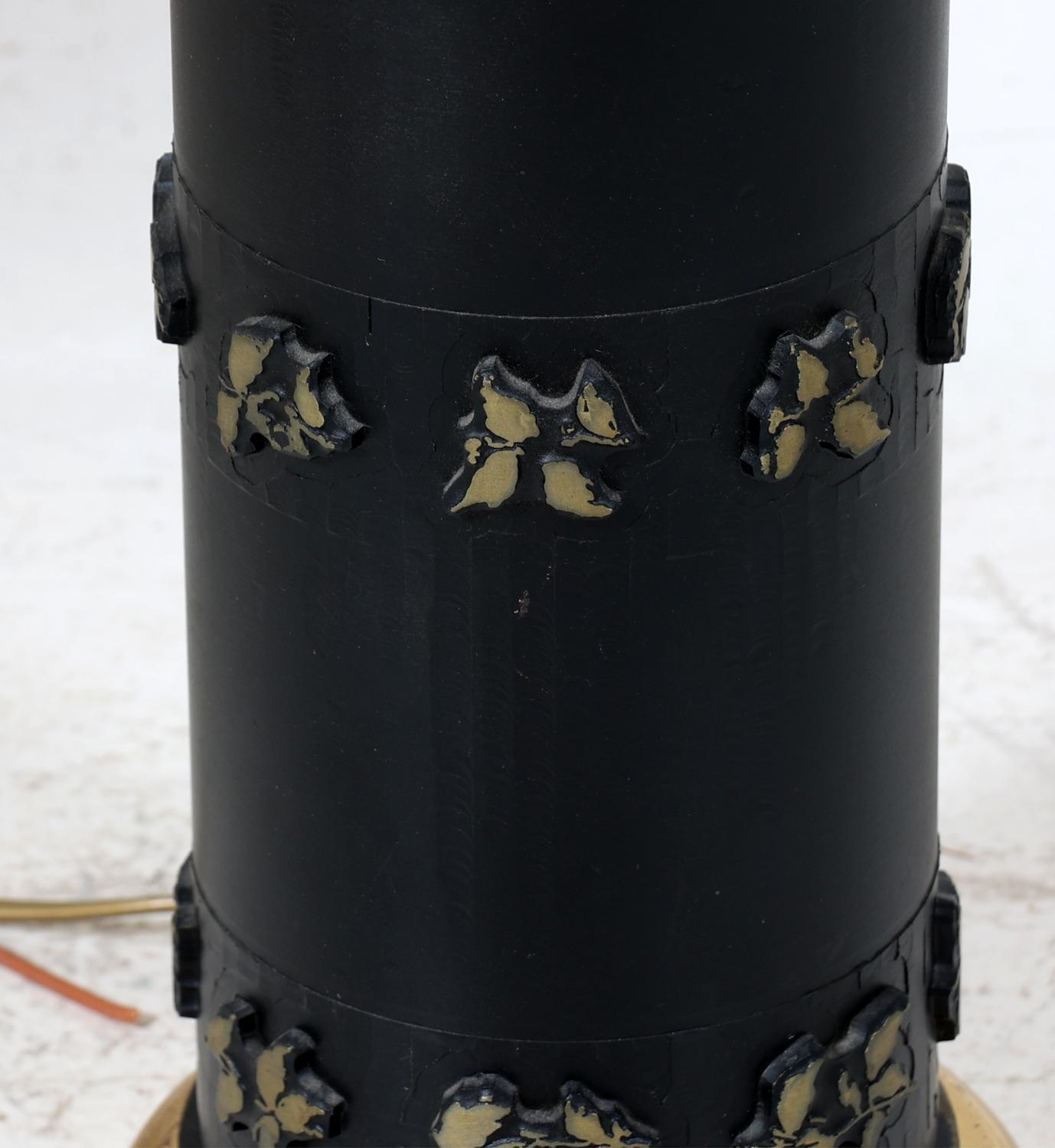 2 Grote metalen schemerlampvoeten vervaardigd met behangperser, h.98 cm.