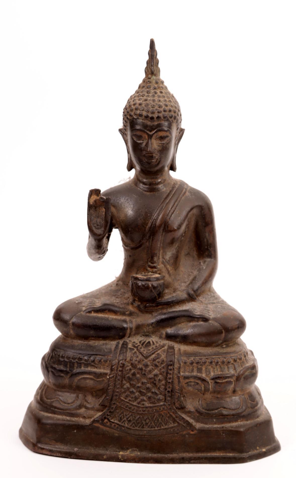 Bronzen beeld van een zittende Boeddha, h.24 cm.
