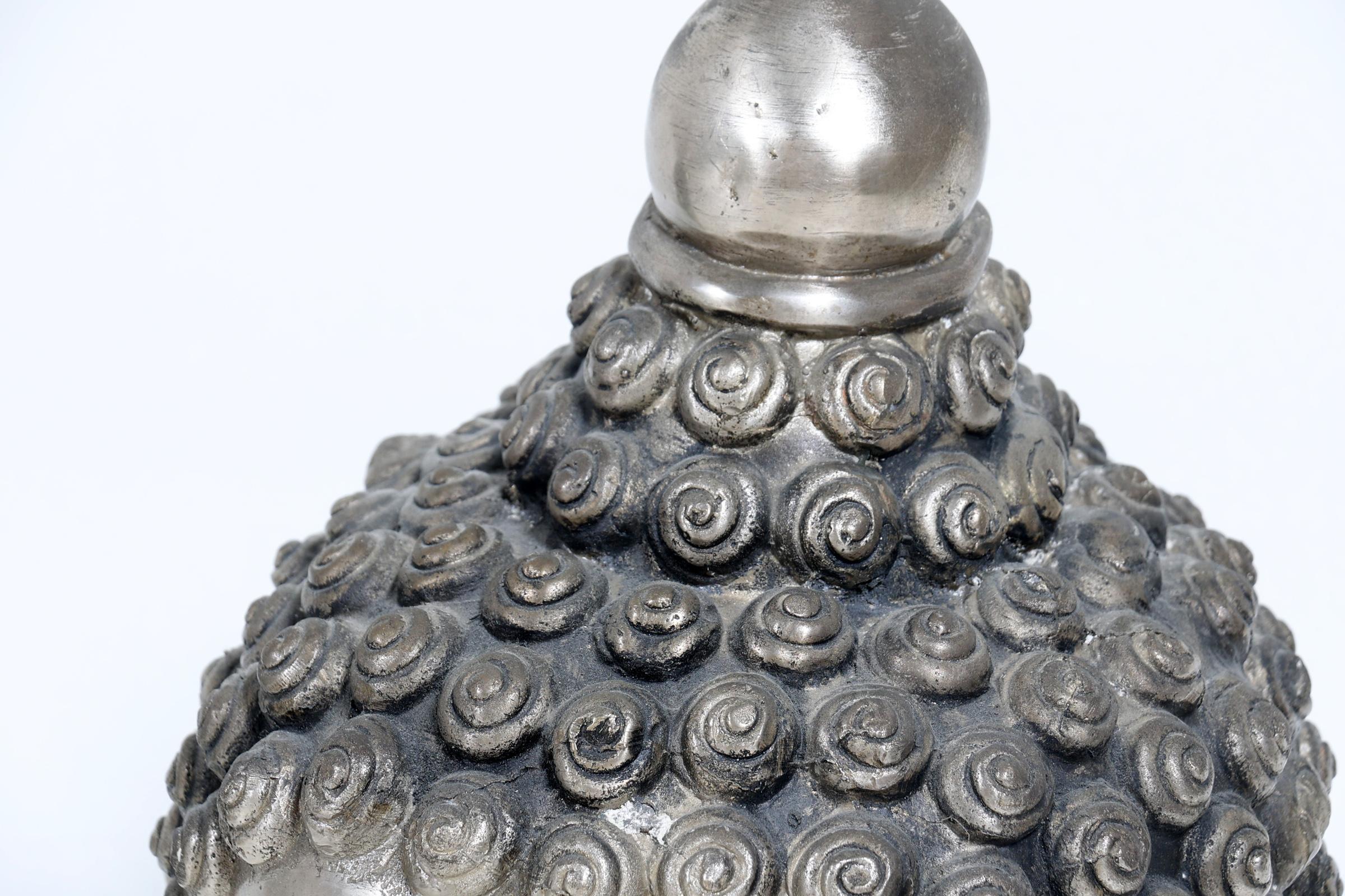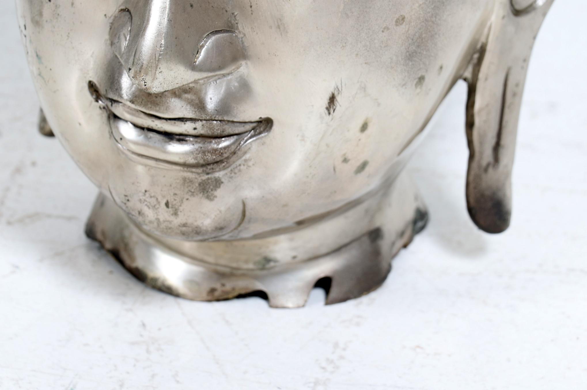Zilverkleurig Boeddha hoofd, h.40 cm.