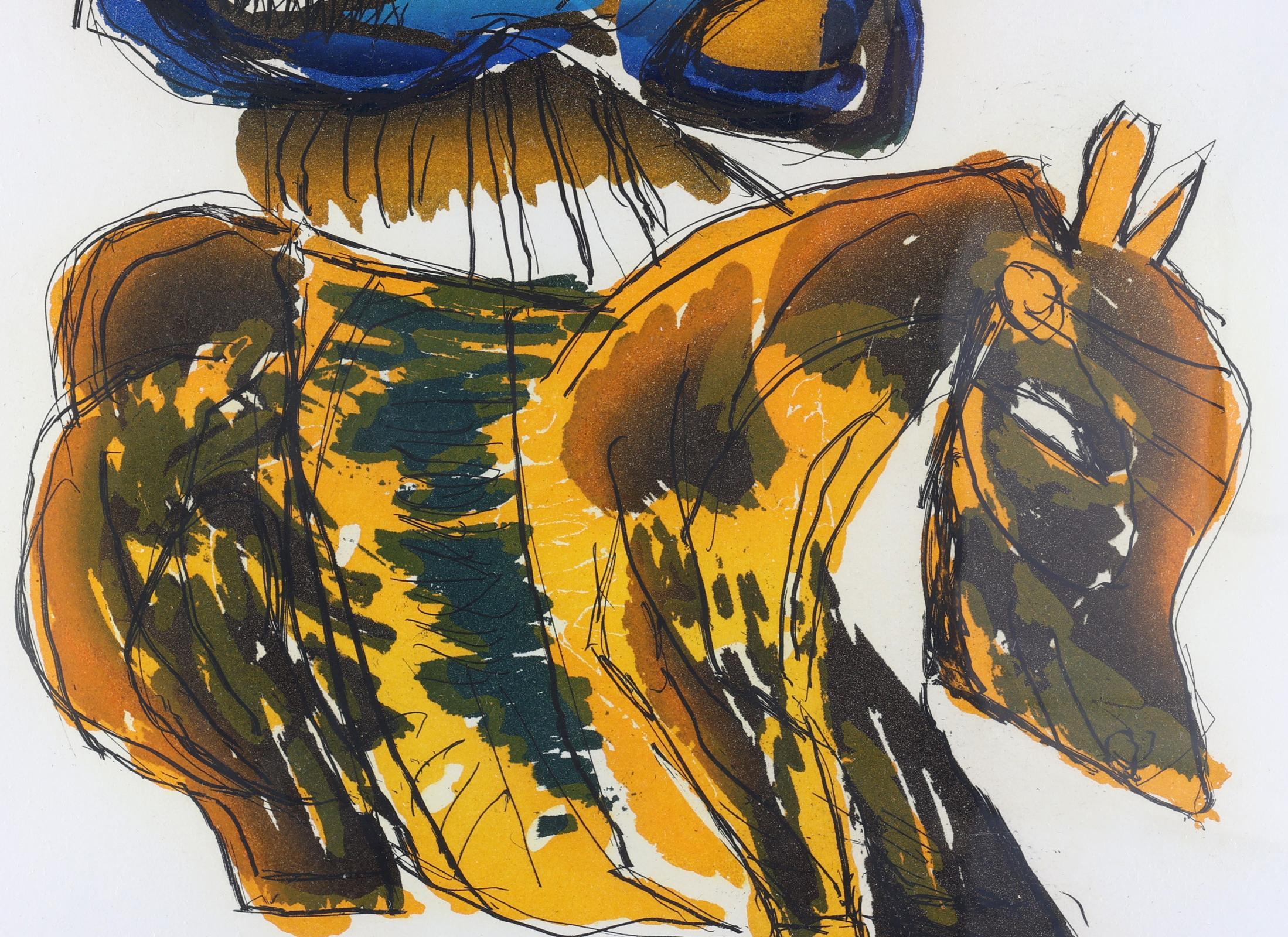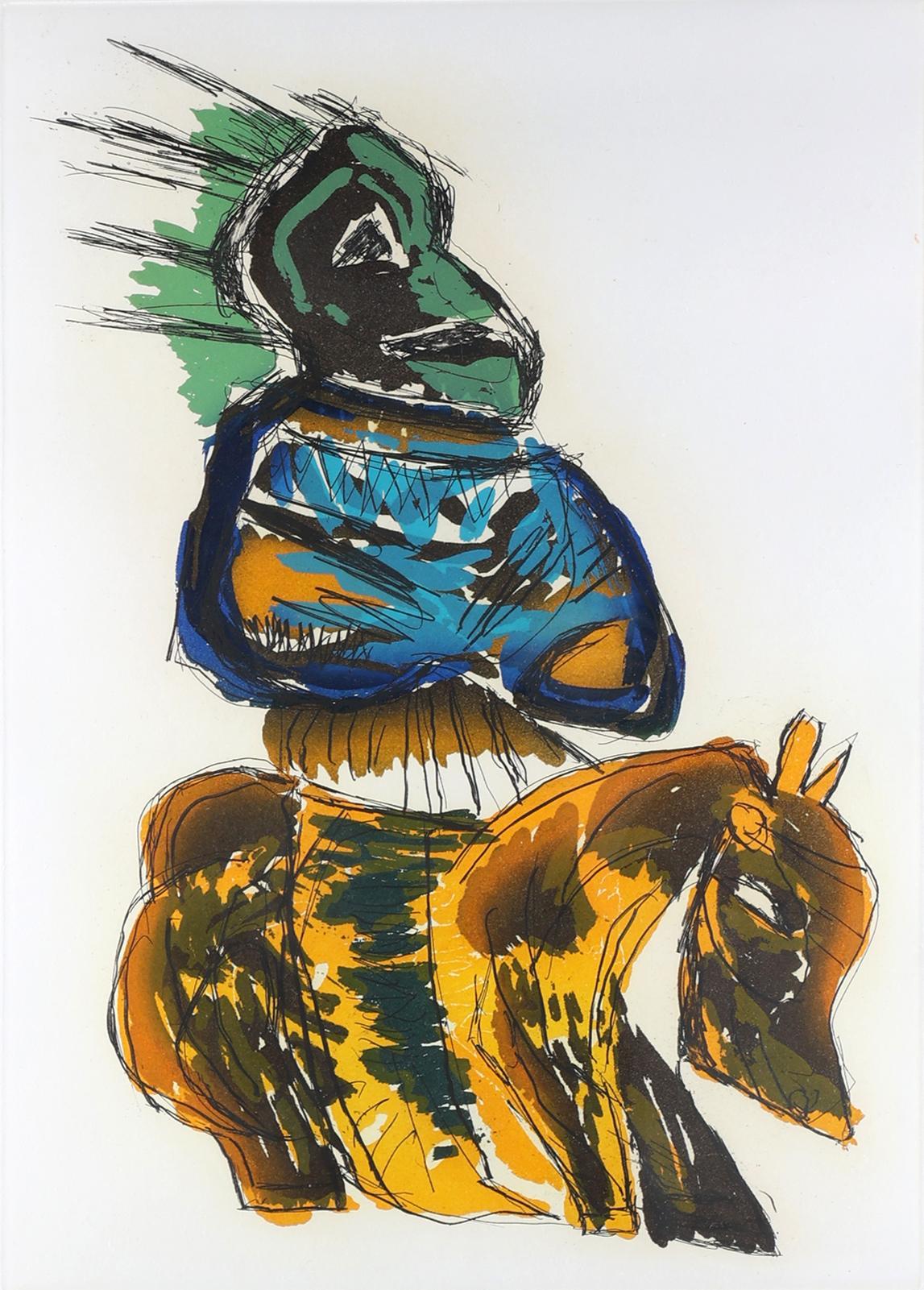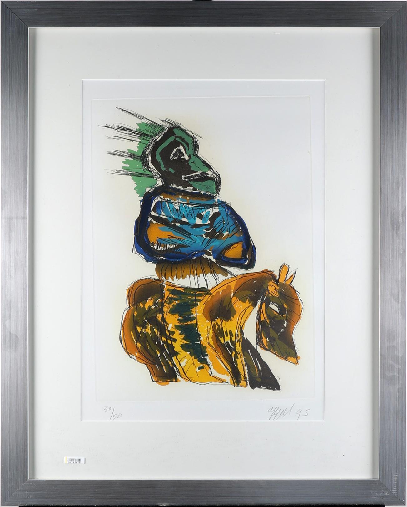 Christiaan (Karel) Appel (1921-2006), De Ruiter, handgesigneerde kleurenets, gedateerd '95, genummerd 30/50, 39 x 56 cm.