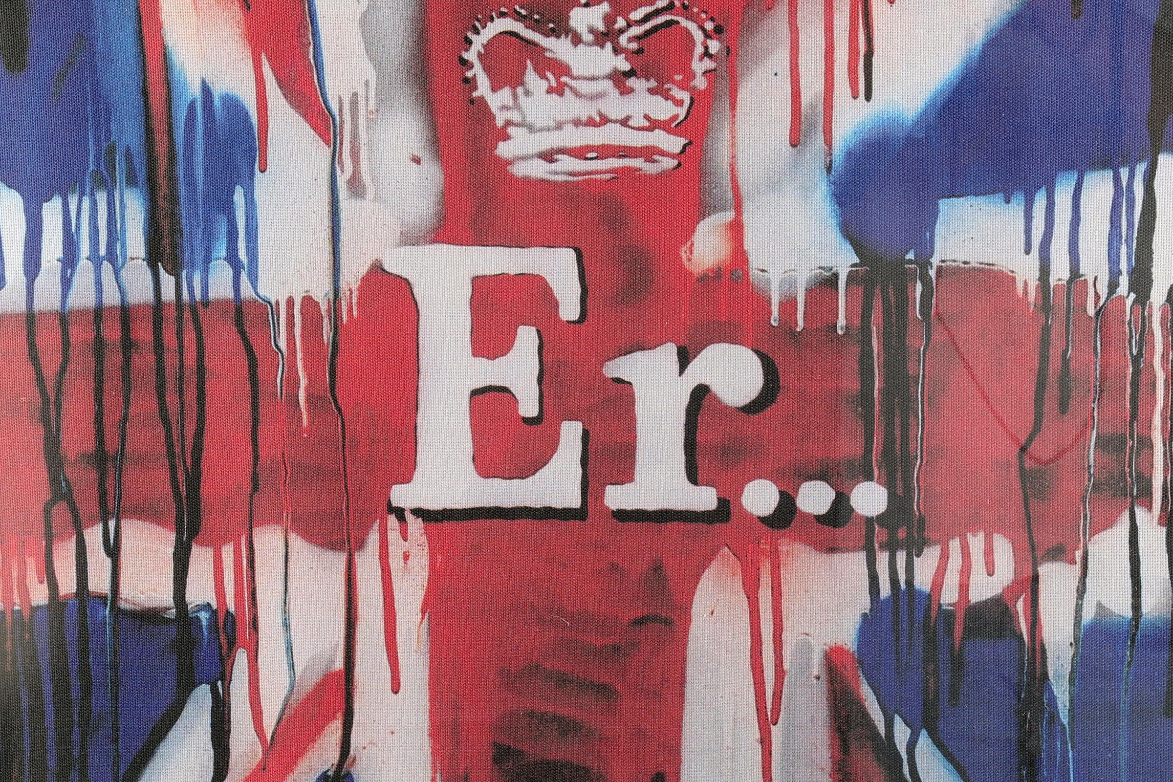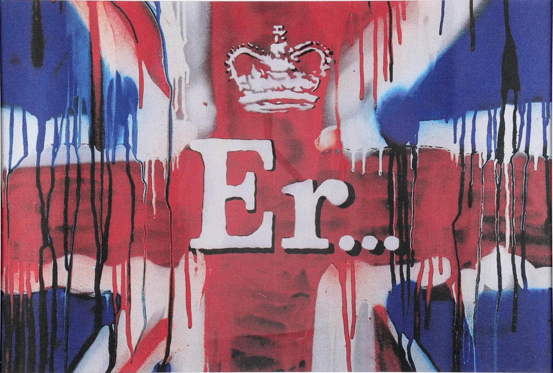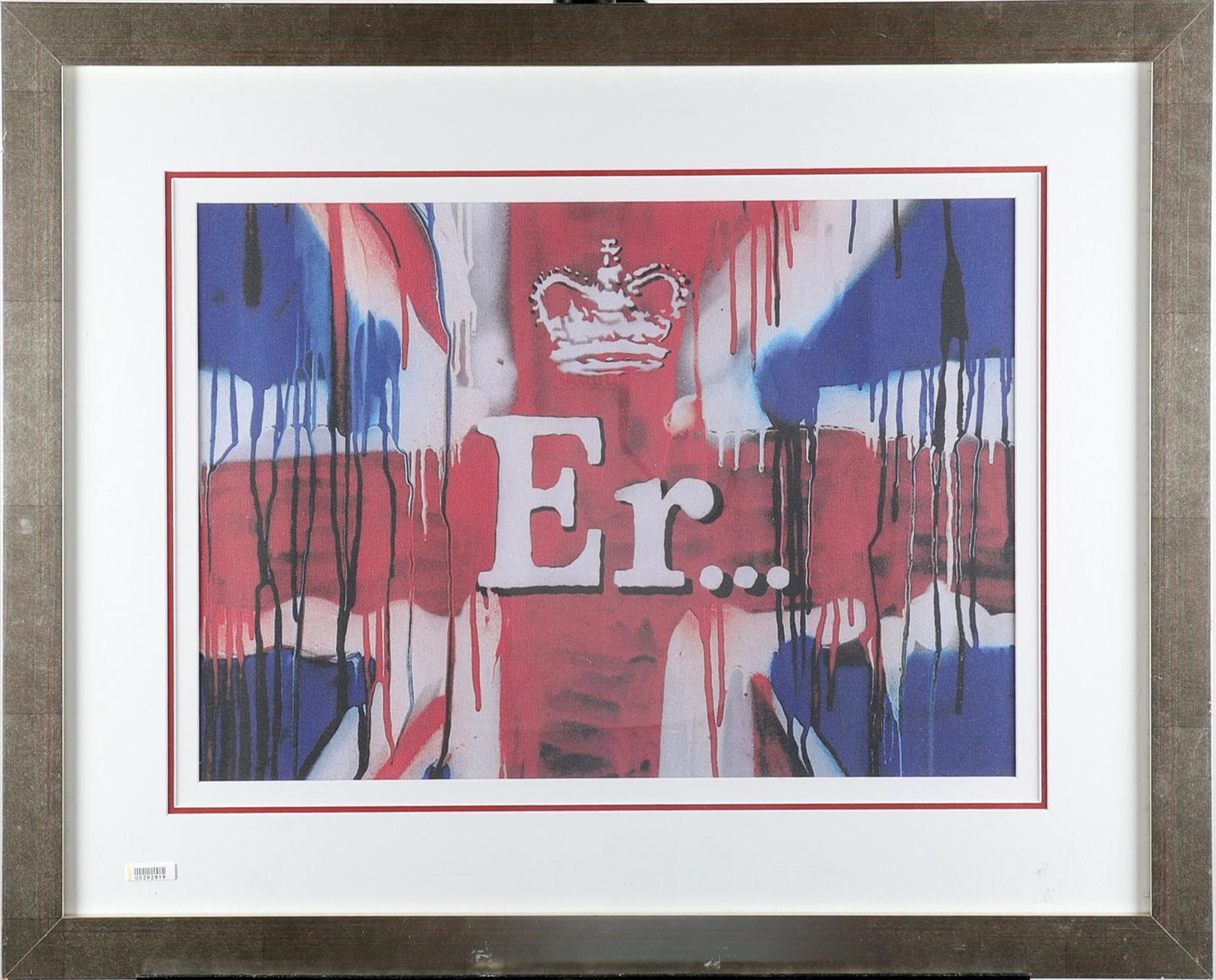 Banksy (1974), Er (Union Jack Tea Towel), 2012, bedrukte stof, gelimiteerde oplage van 1000 stuks waarvan slechts 400 genummerd zijn, 40 x 56 cm.