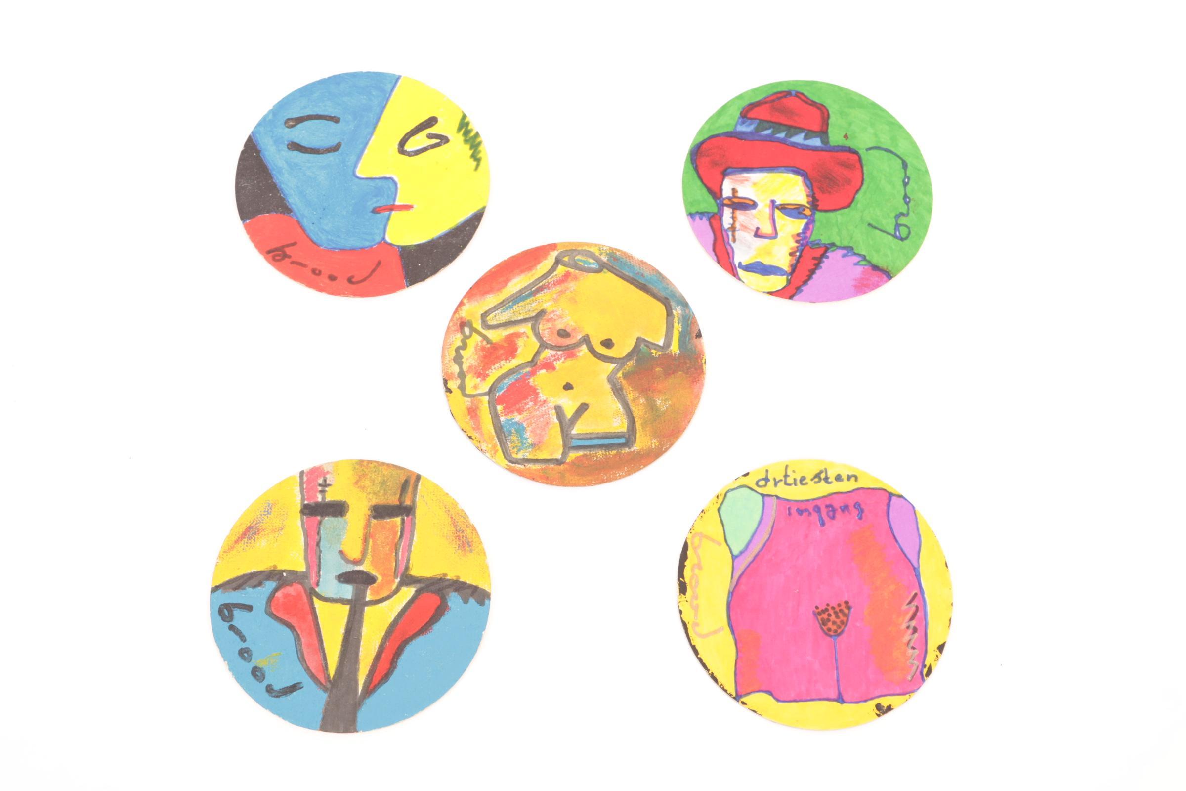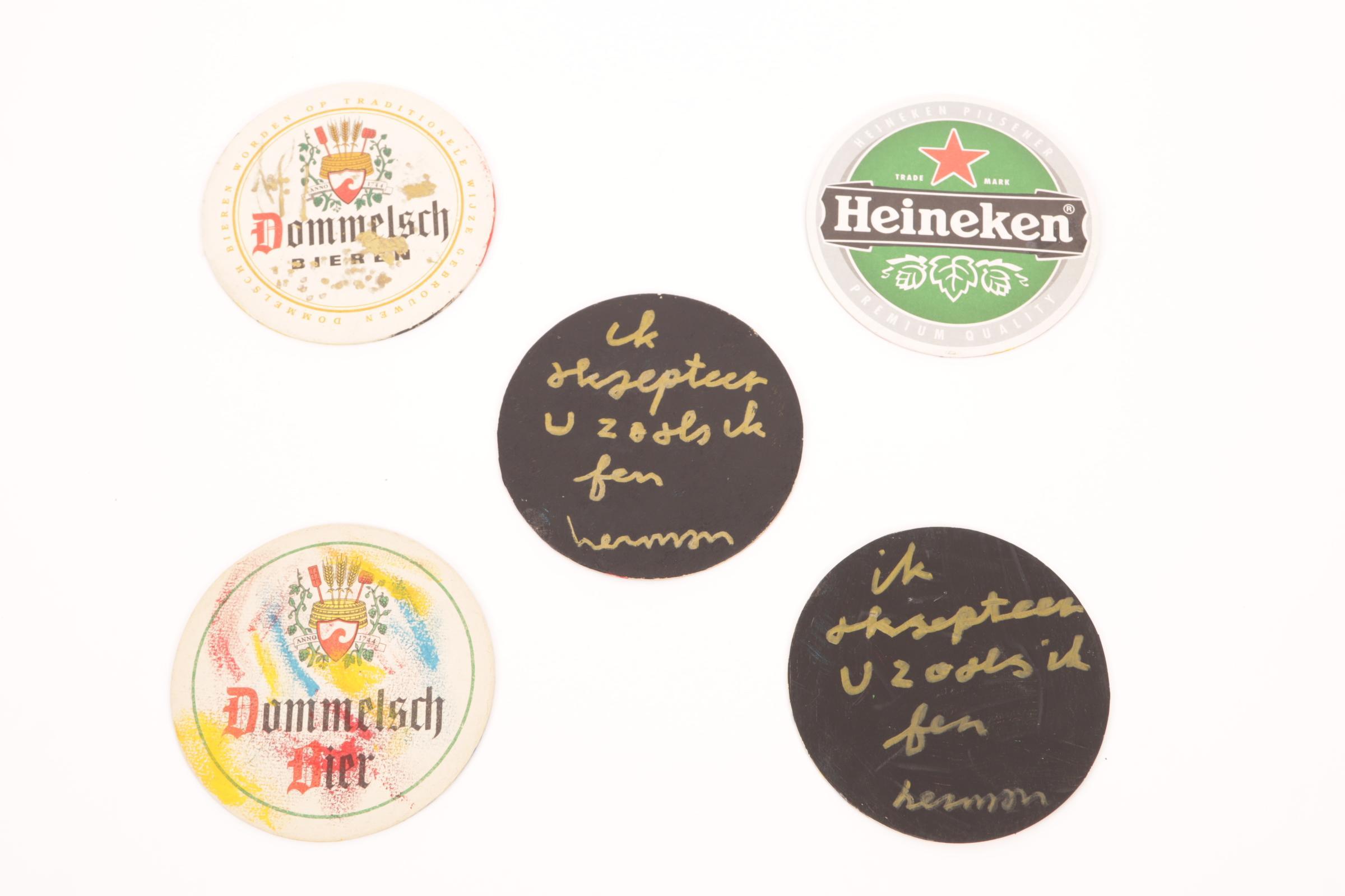 Herman Brood (1945-2001), vijf met de hand gekleurde bierviltjes